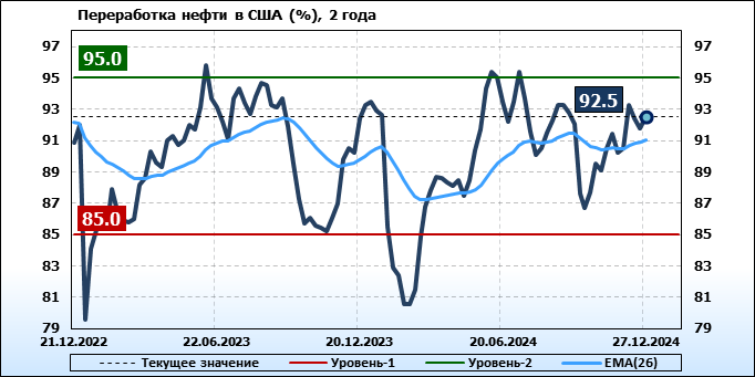 EIA. Коммерческие запасы нефти в США на 27 декабря 2024