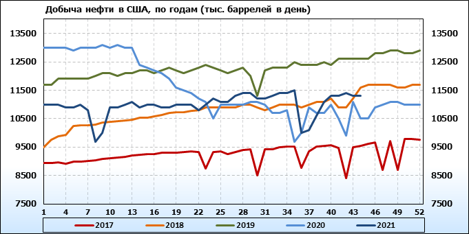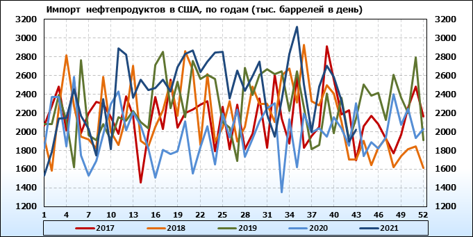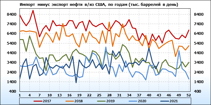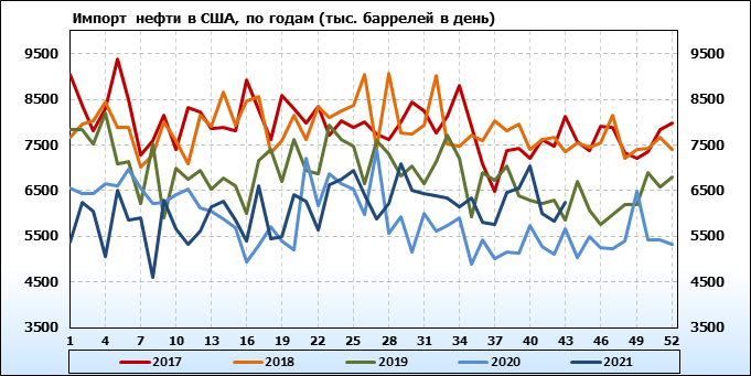 EIA. Добыча, импорт, экспорт нефти в США на 27 октября 2021