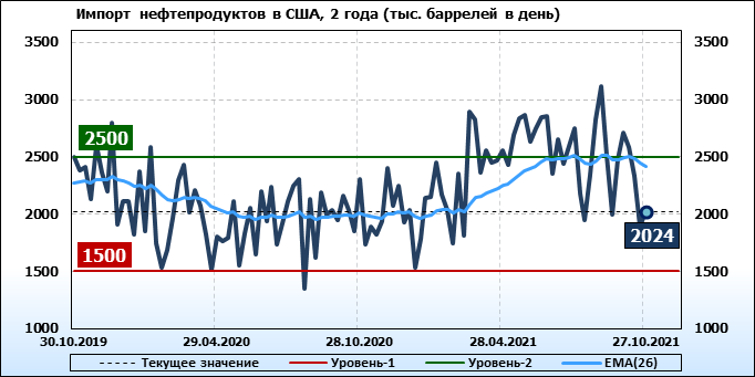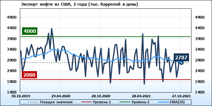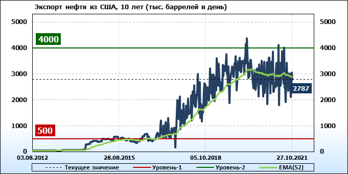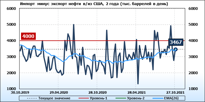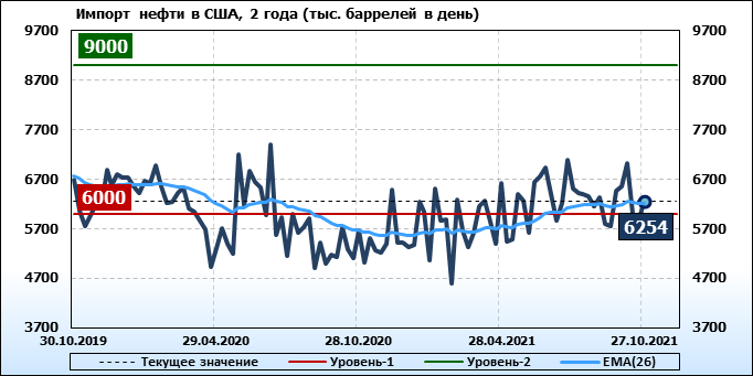 EIA. Добыча, импорт, экспорт нефти в США на 27 октября 2021