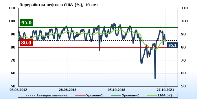 EIA. Коммерческие запасы нефти в США на 27 октября 2021
