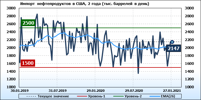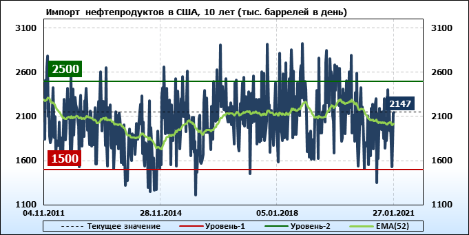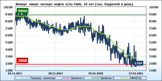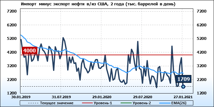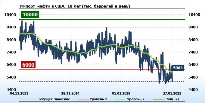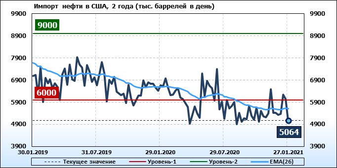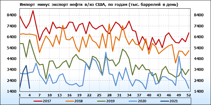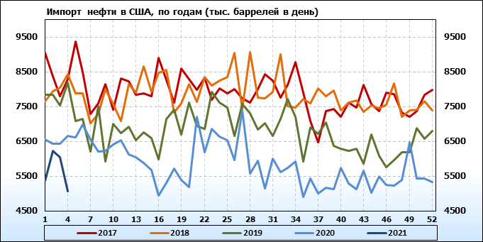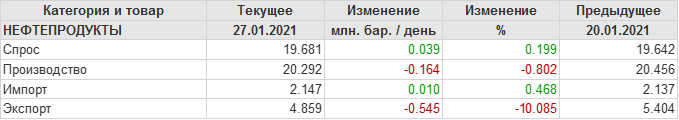 EIA. Добыча, импорт, экспорт нефти в США на 27 января 2021