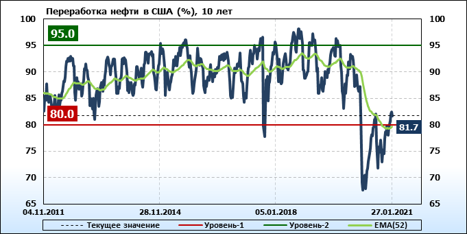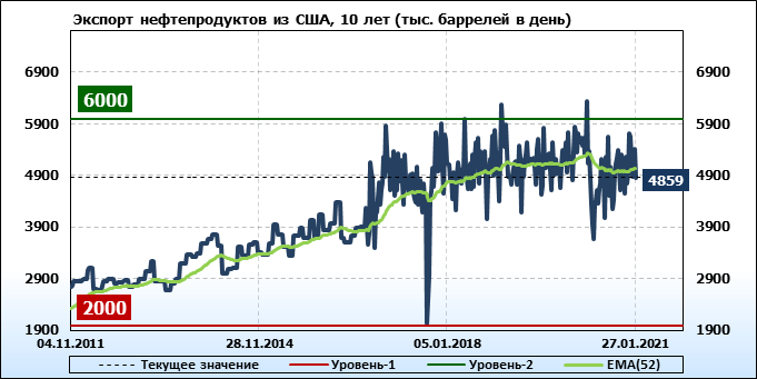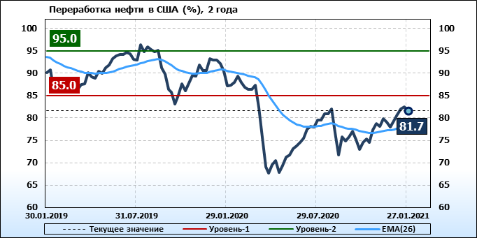 EIA. Коммерческие запасы нефти в США на 27 января 2021