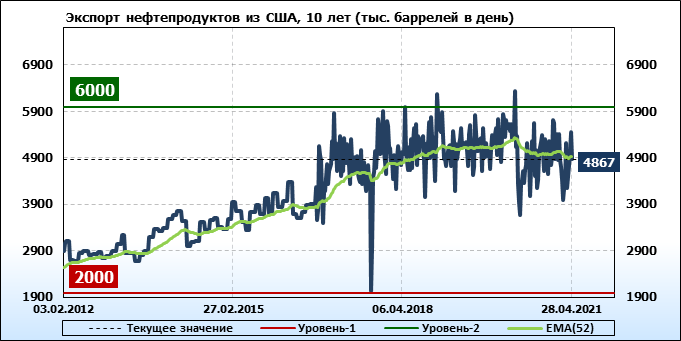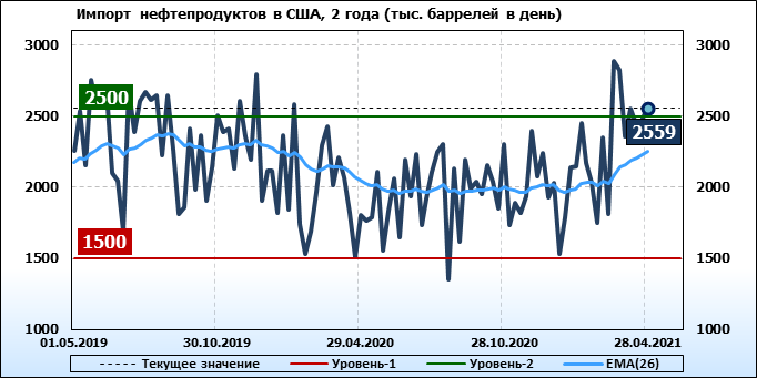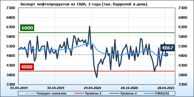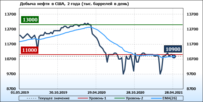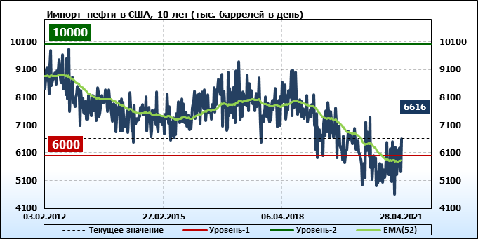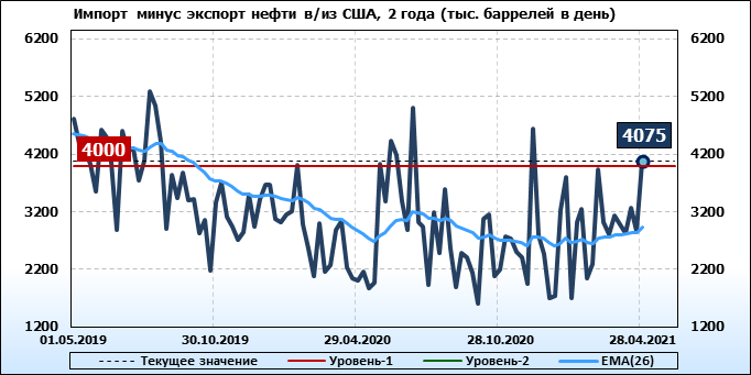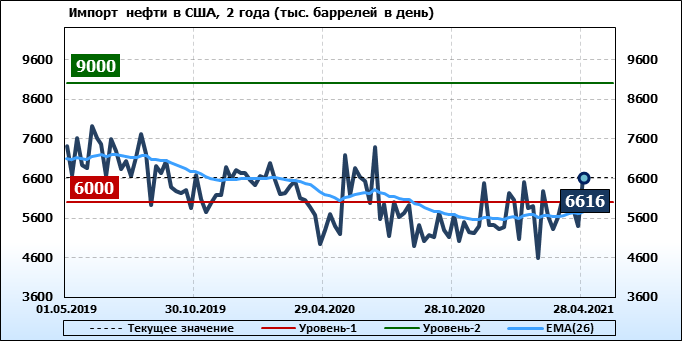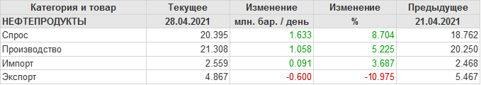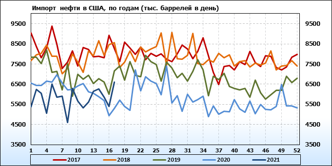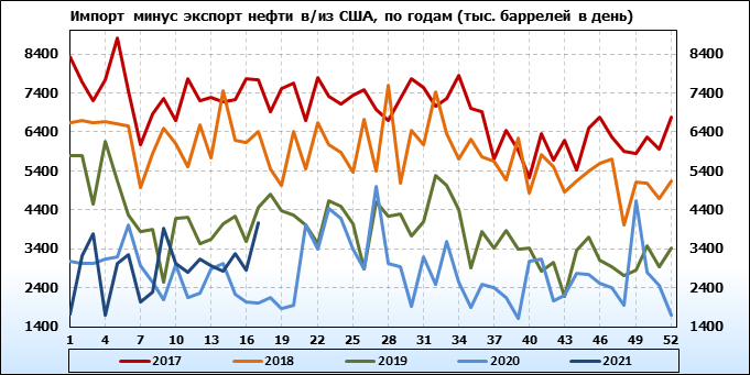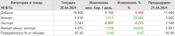 EIA. Добыча, импорт, экспорт нефти в США на 28 апреля 2021