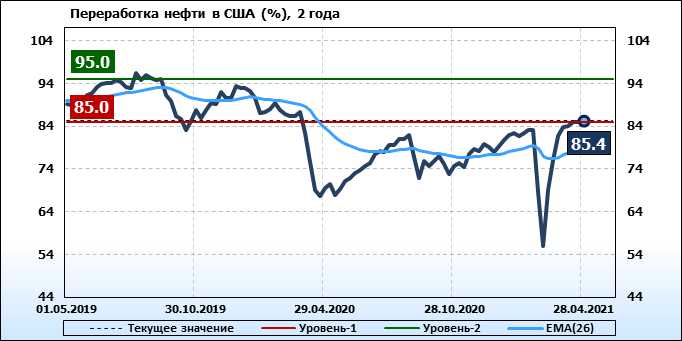 EIA. Коммерческие запасы нефти в США на 28 апреля 2021