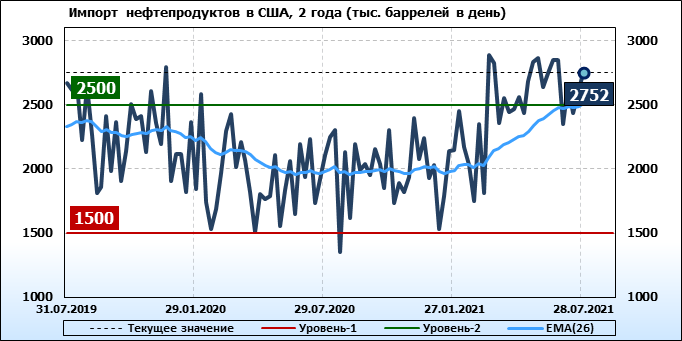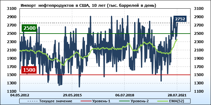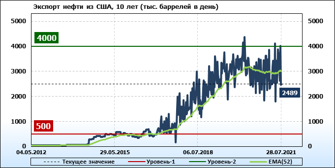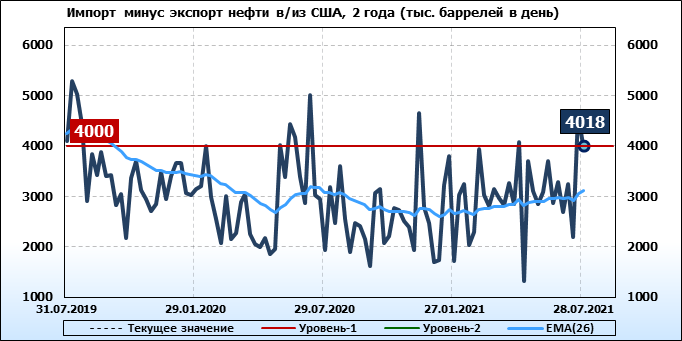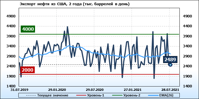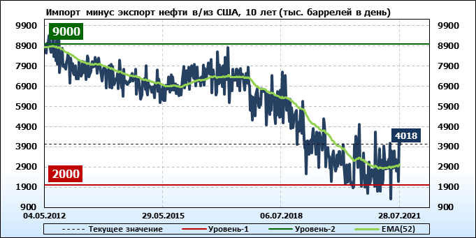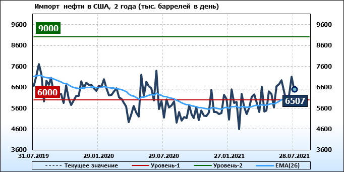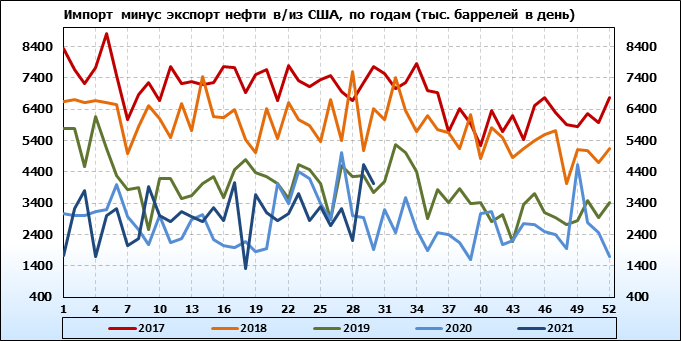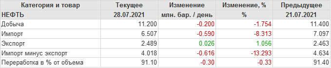 EIA. Добыча, импорт, экспорт нефти в США на 28 июля 2021