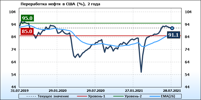 EIA. Коммерческие запасы нефти в США на 28 июля 2021