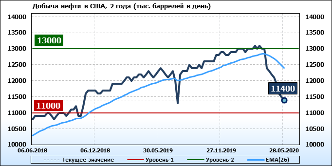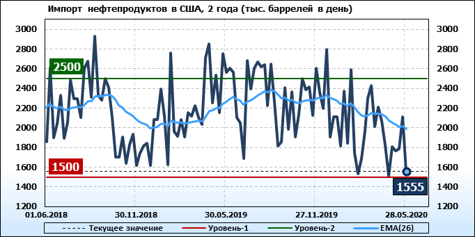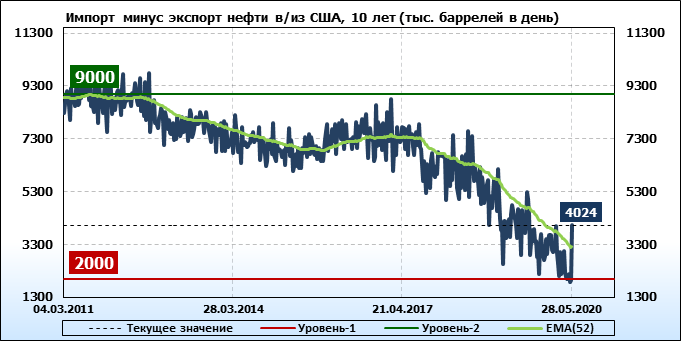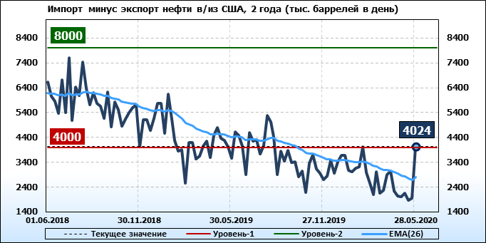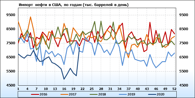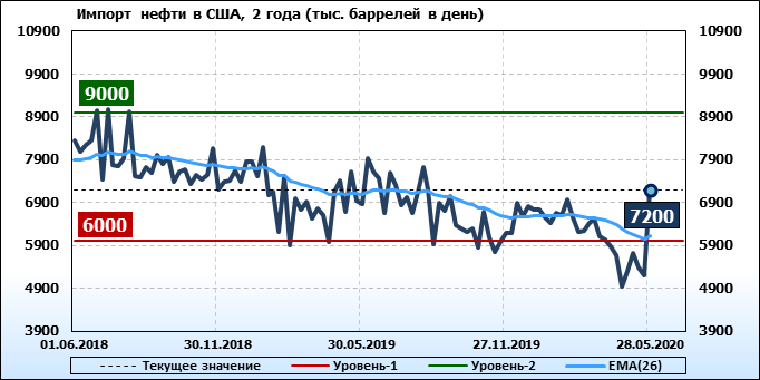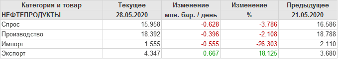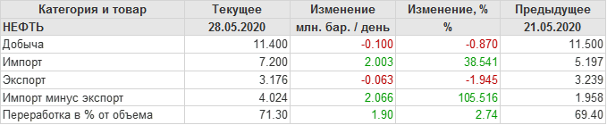 EIA. Добыча, импорт, экспорт нефти в США на 28 мая 2020
