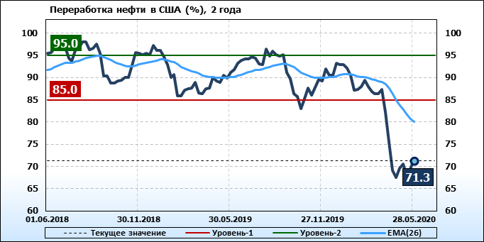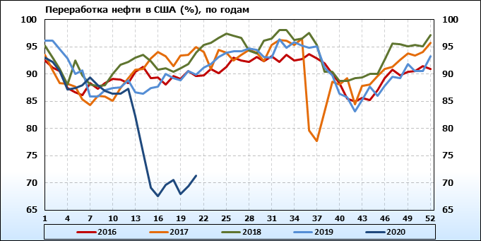 EIA. Коммерческие запасы нефти в США на 28 мая 2020