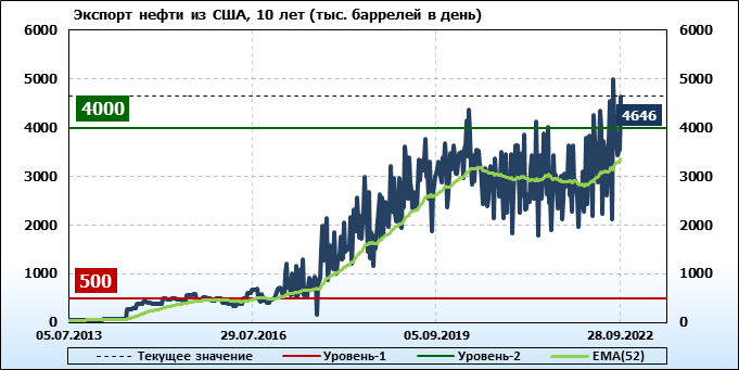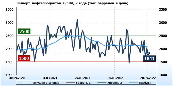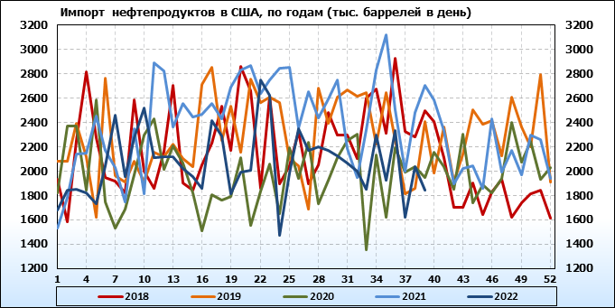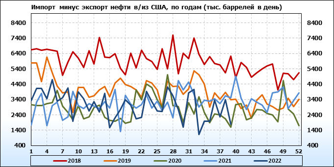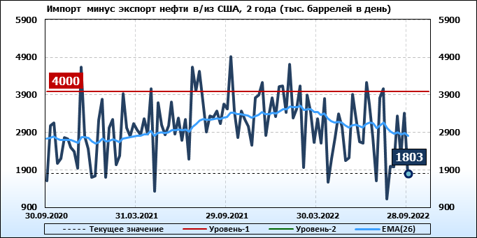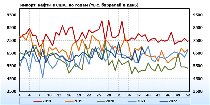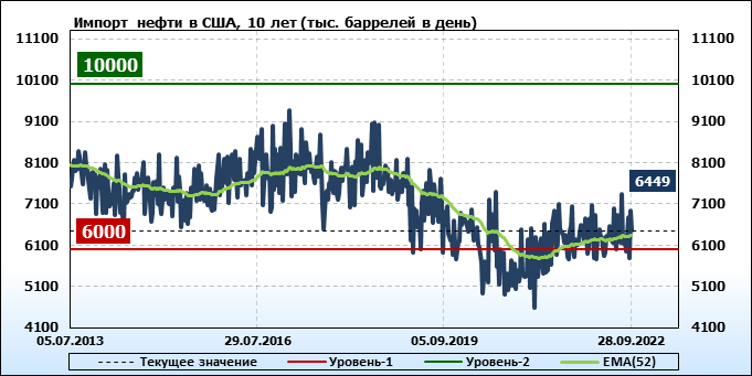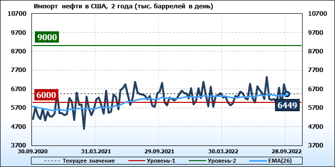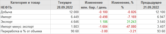EIA. Добыча, импорт, экспорт нефти в США на 28 сентября 2022