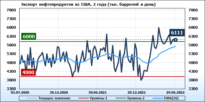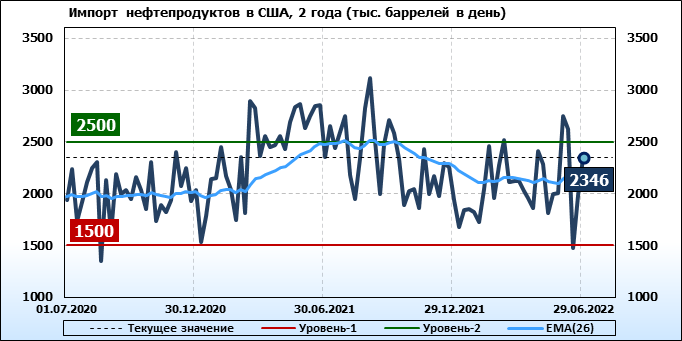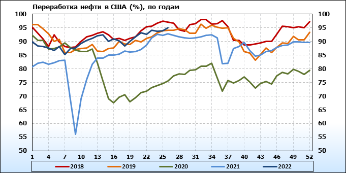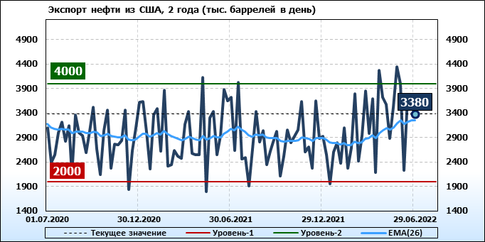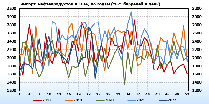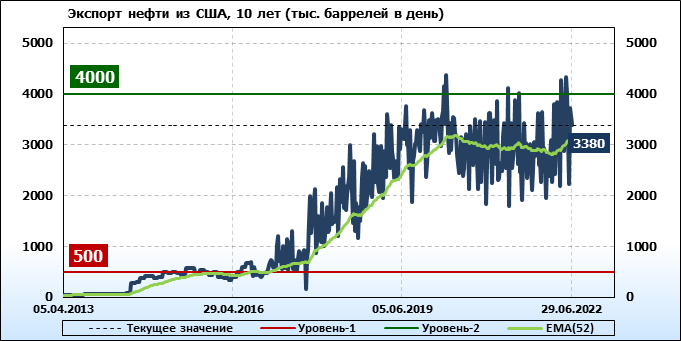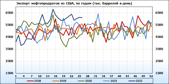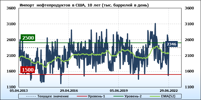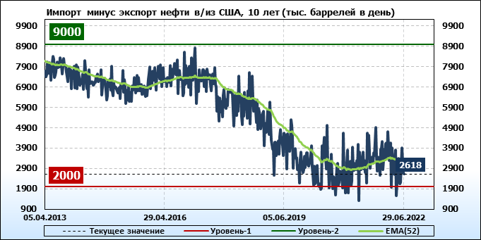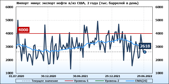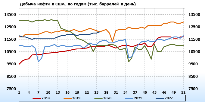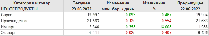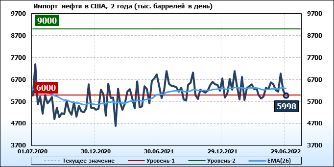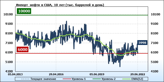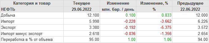 EIA. Добыча, импорт, экспорт нефти в США на 29 июня 2022