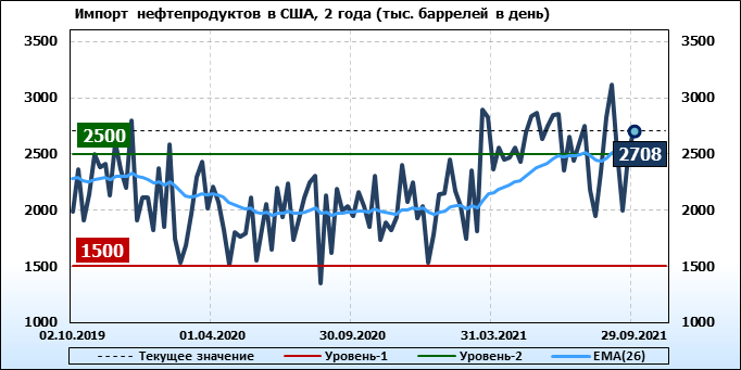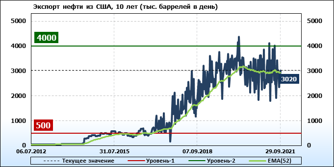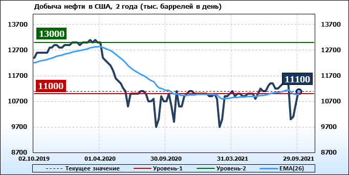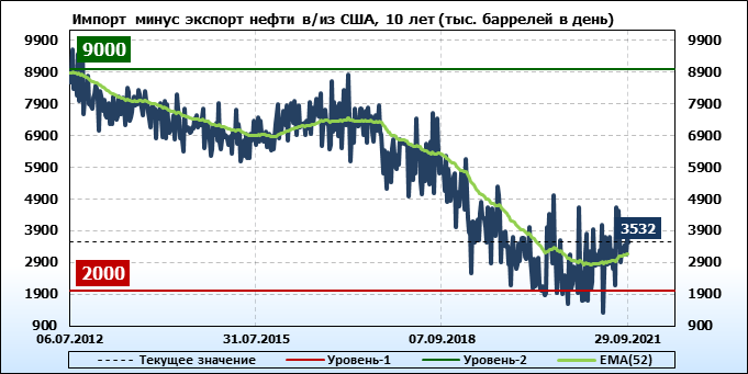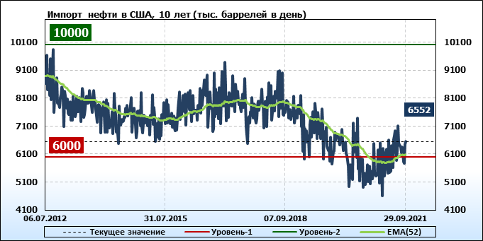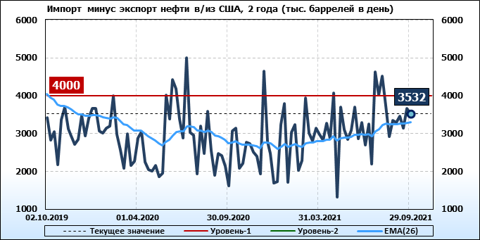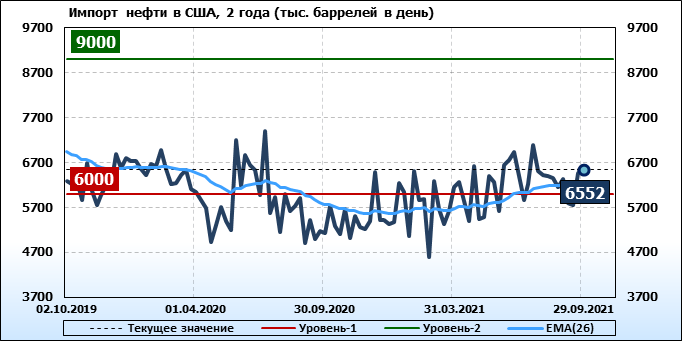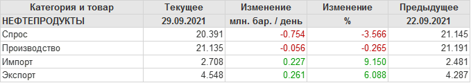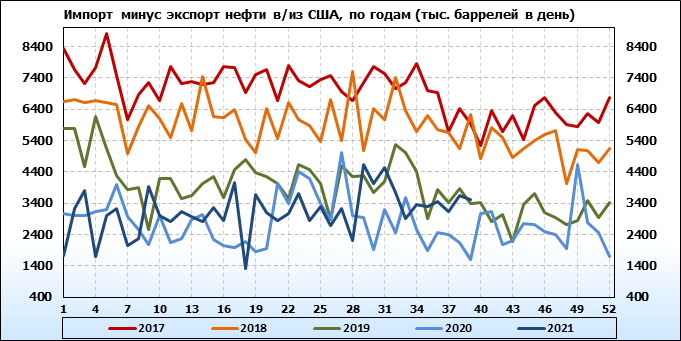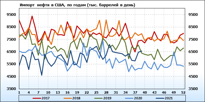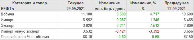 EIA. Добыча, импорт, экспорт нефти в США на 29 сентября 2021
