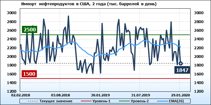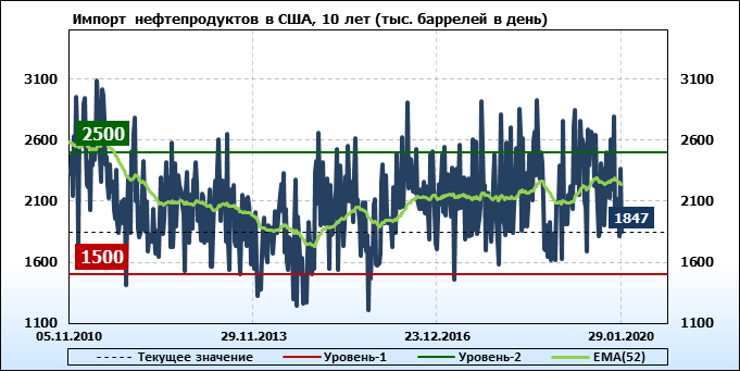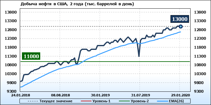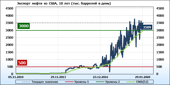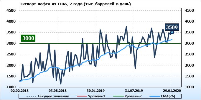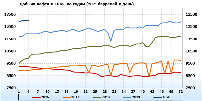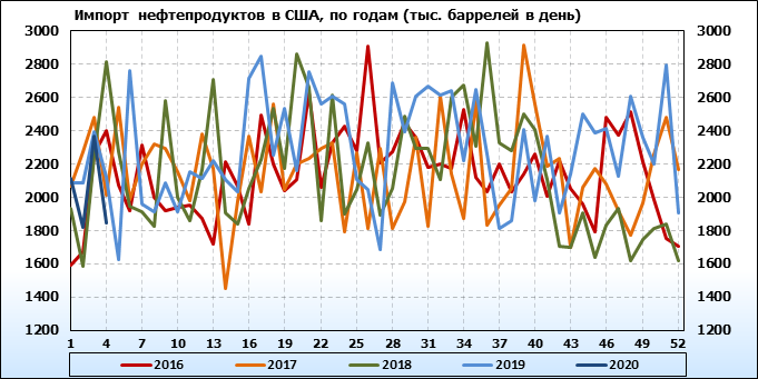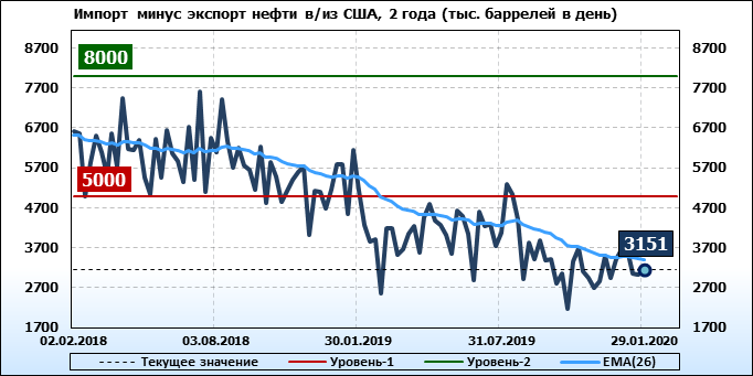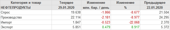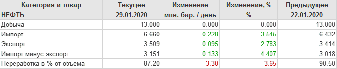 EIA. Добыча, импорт, экспорт нефти в США на 29 января 2020