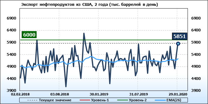 Спрос на нефтепродукты упал на -1.866 до 19.638 млн. баррелей. Производство дистиллятов упало на -2.181 до 22.114 млн. баррелей. Импорт дистиллятов упал на -0.523 до 1.847 млн. баррелей. Экспорт бензина вырос на 0.479 до 5.851 млн. баррелей в день.