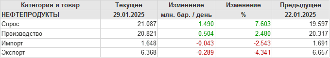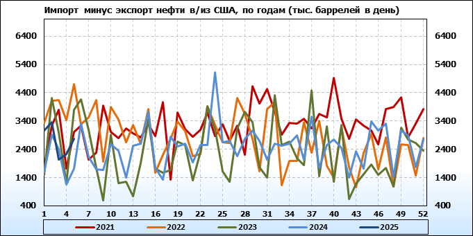 EIA. Добыча, импорт, экспорт нефти в США на 29 января 2025