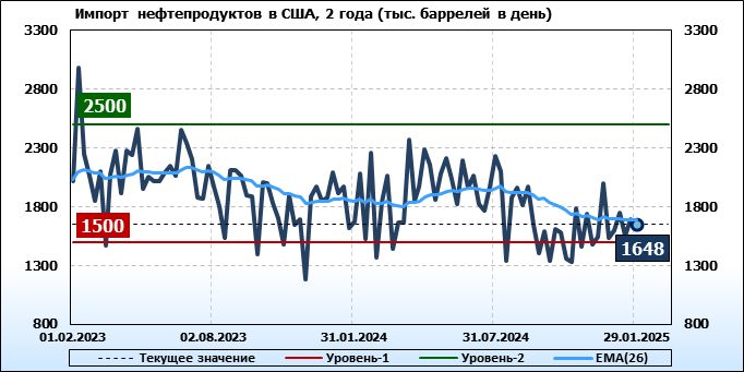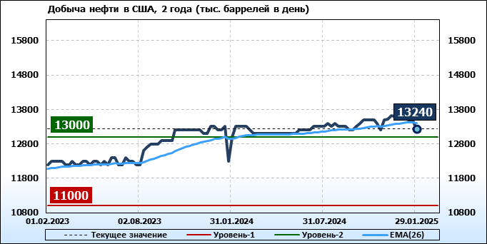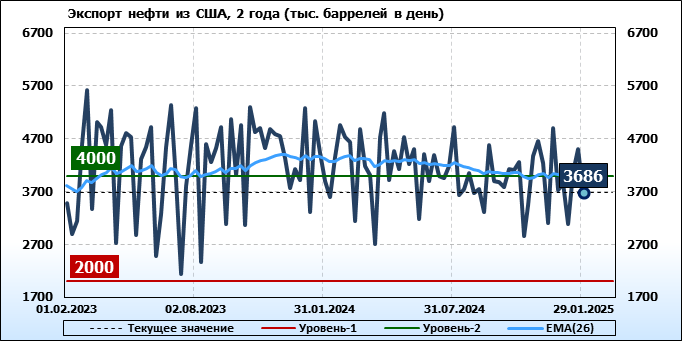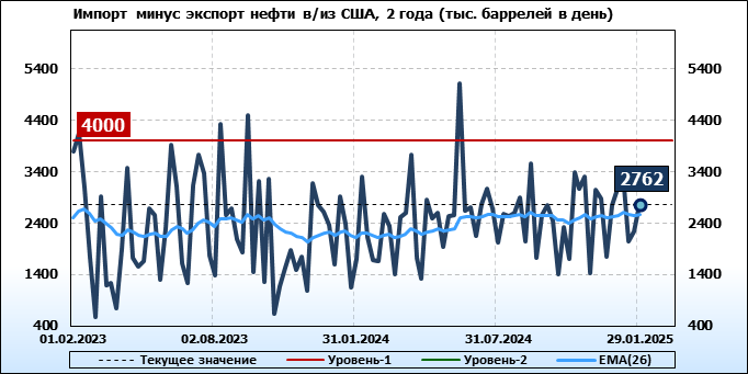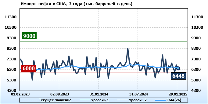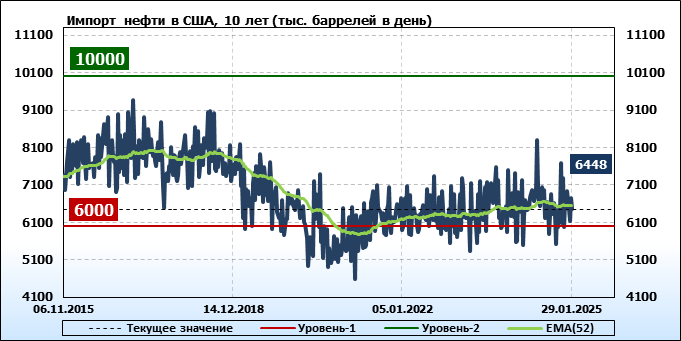 EIA. Добыча, импорт, экспорт нефти в США на 29 января 2025