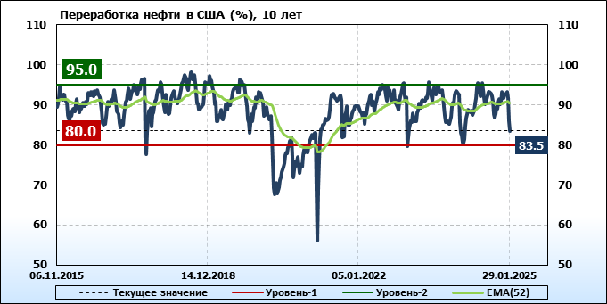 EIA. Коммерческие запасы нефти в США на 29 января 2025