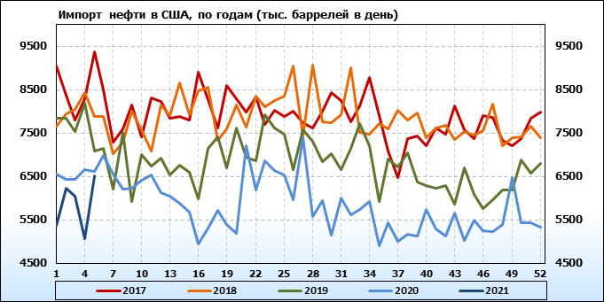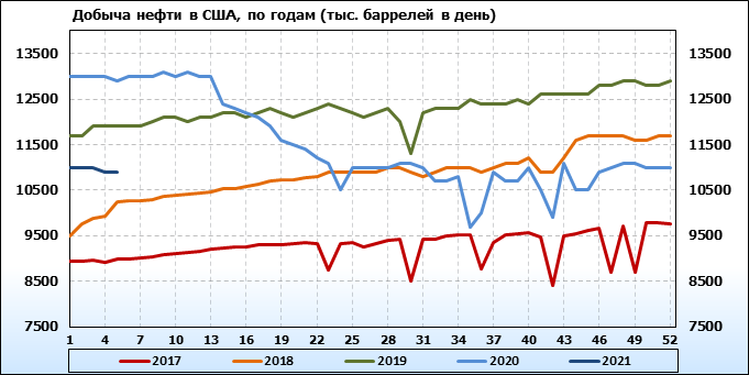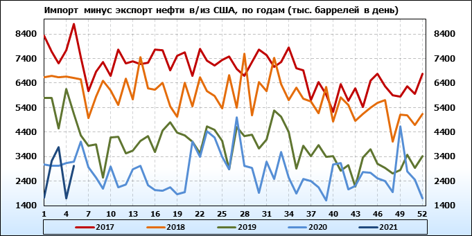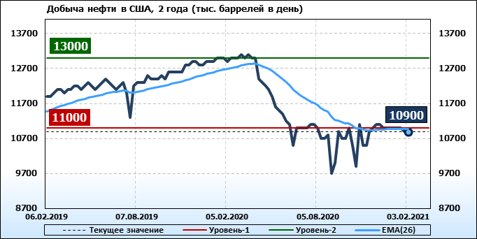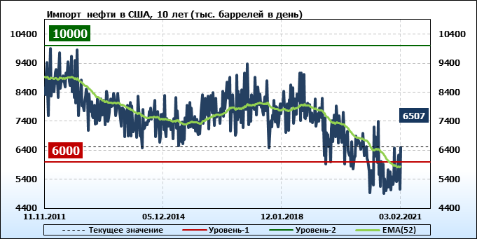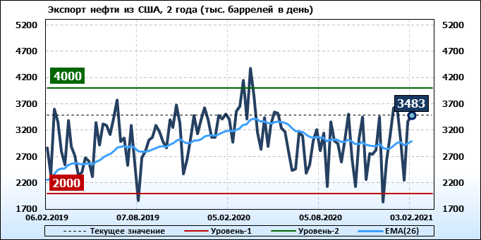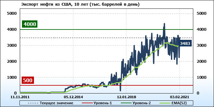 EIA. Добыча, импорт, экспорт нефти в США на 3 февраля 2021