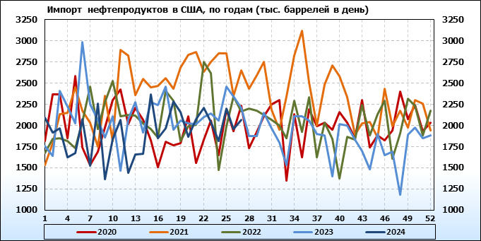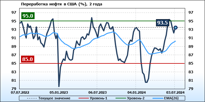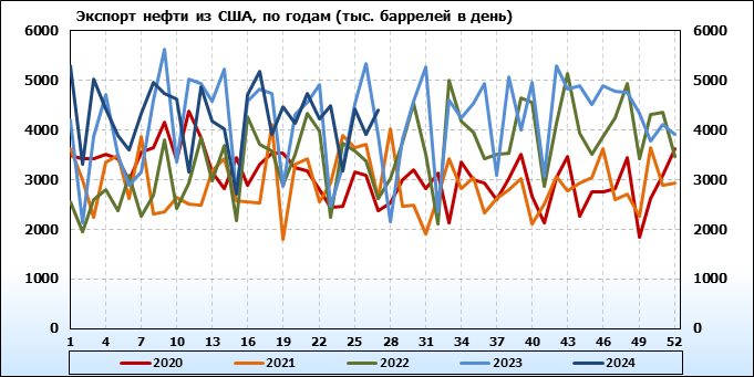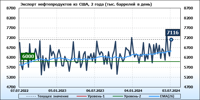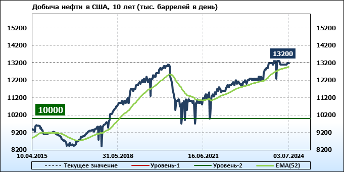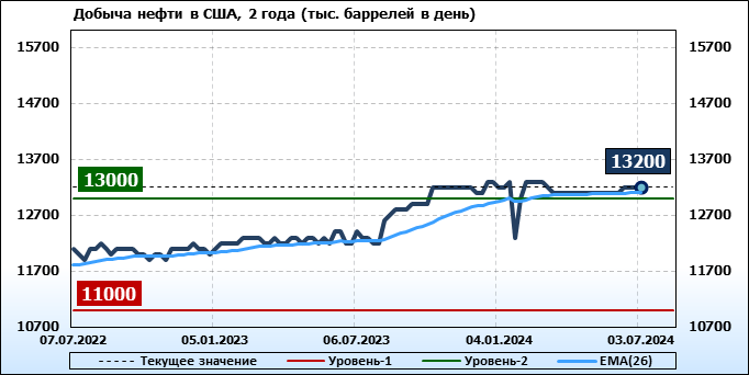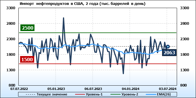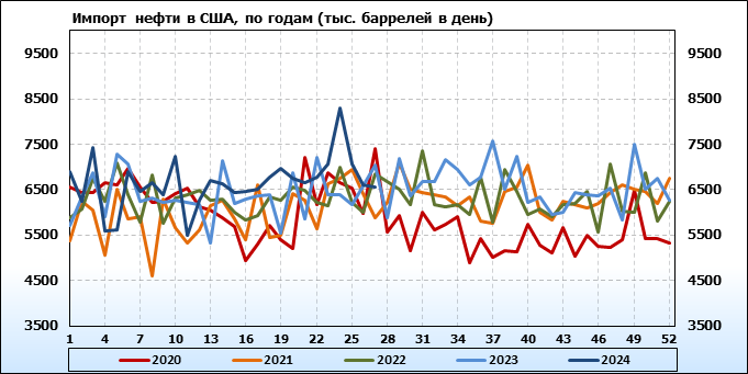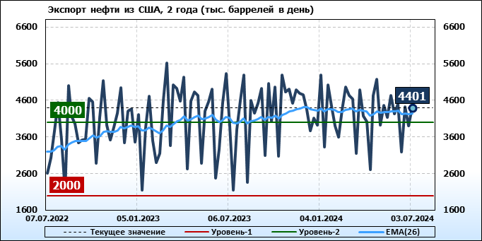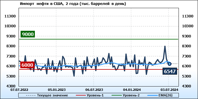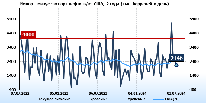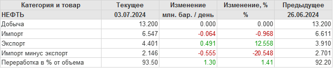 EIA. Добыча, импорт, экспорт нефти в США на 3 июля 2024