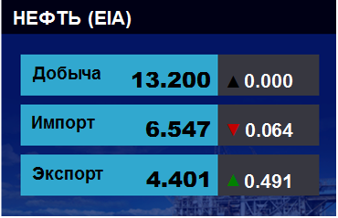 Добыча нефти не изменилась и составляет 13.2 млн. баррелей в день. Импорт нефти упал на -0.064 до 6.547 млн. баррелей в день. Экспорт нефти вырос на 0.491 до 4.401 млн. баррелей в день. Таким образом, чистый импорт нефти упал на -0.555 до 2.146 млн. баррелей в день. Переработка нефти выросла на 1.3 до 93.5 процента.