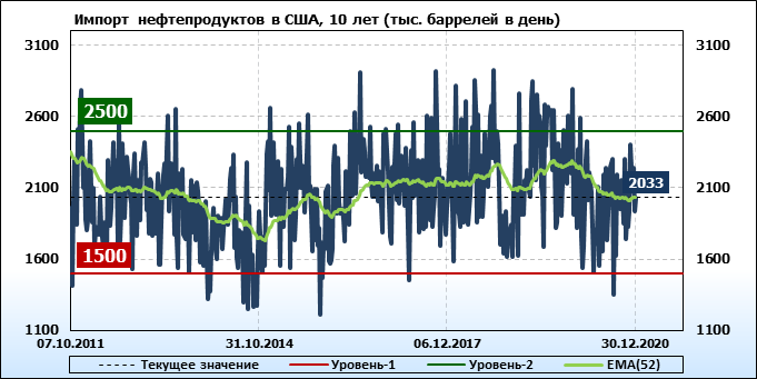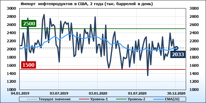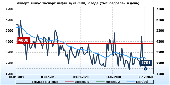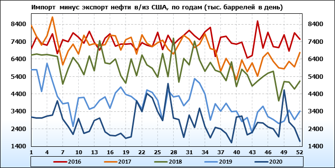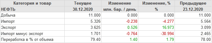 EIA. Добыча, импорт, экспорт нефти в США на 30 декабря 2020