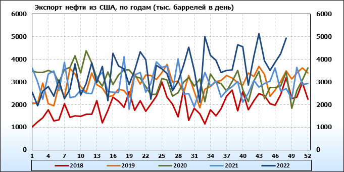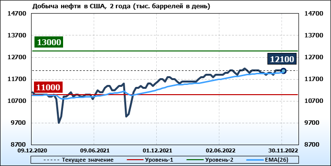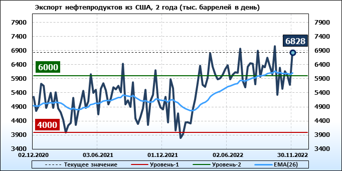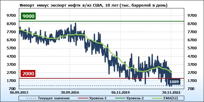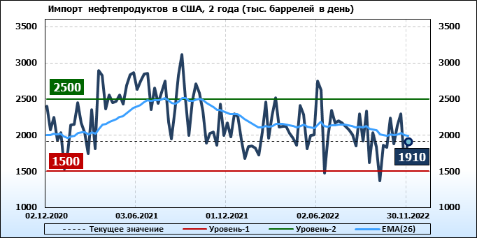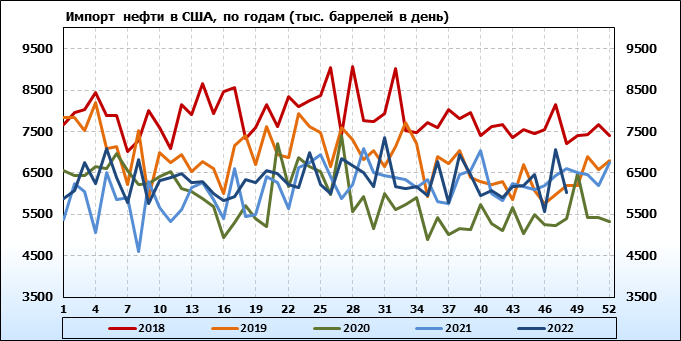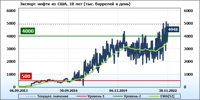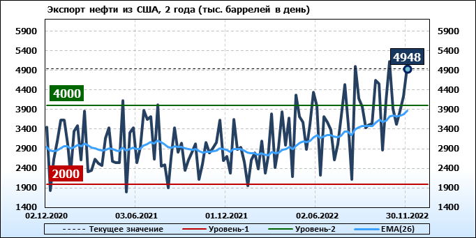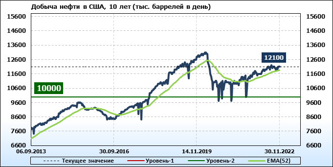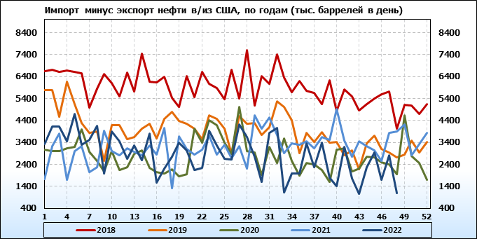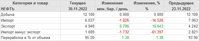 EIA. Добыча, импорт, экспорт нефти в США на 30 ноября 2022