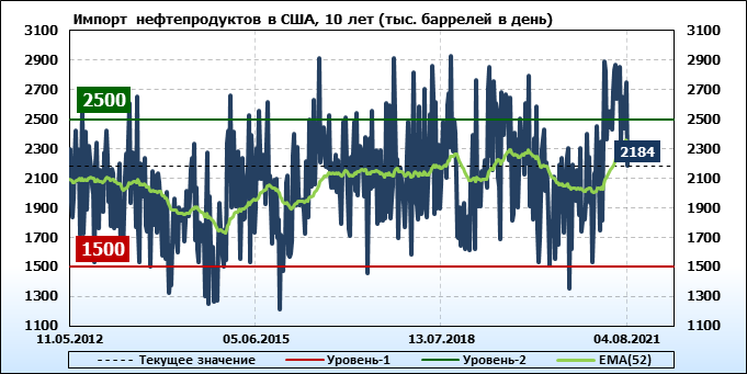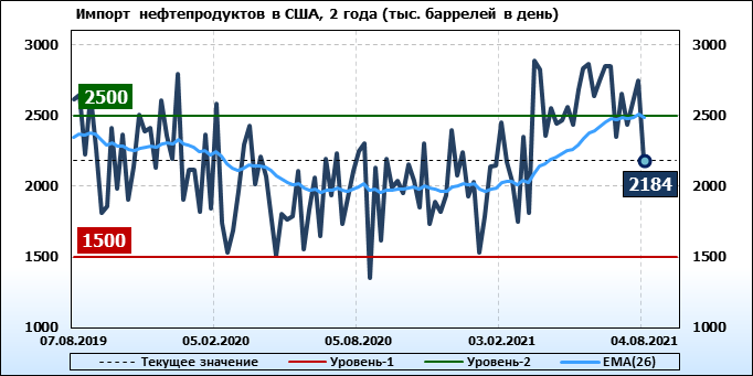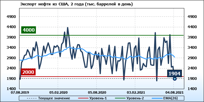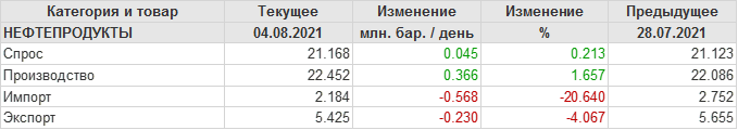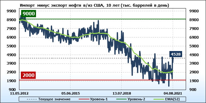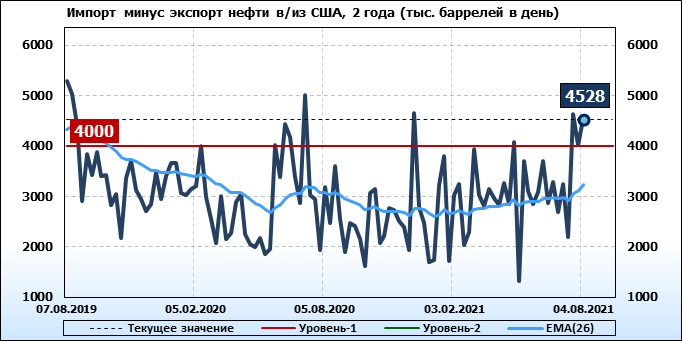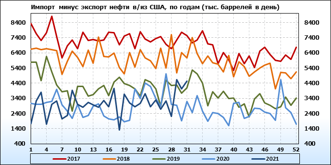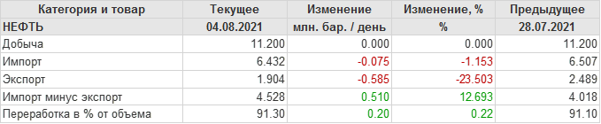 EIA. Добыча, импорт, экспорт нефти в США на 4 августа 2021