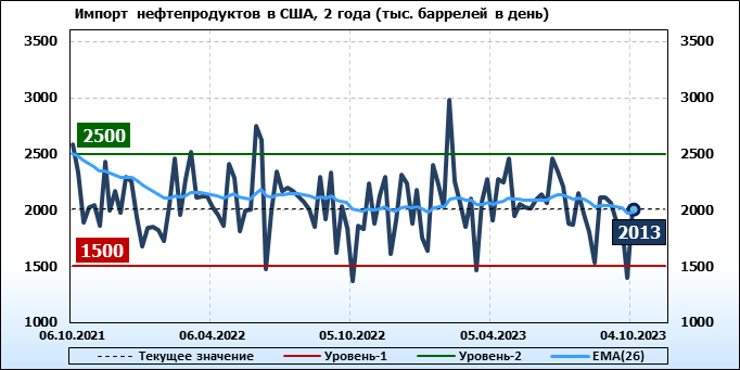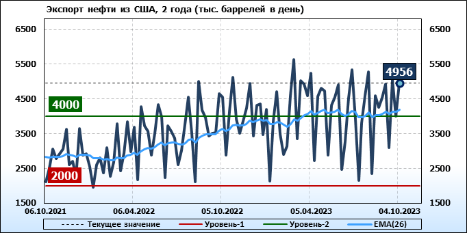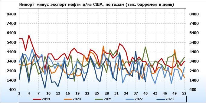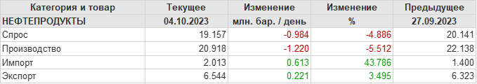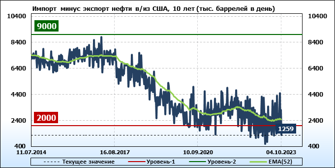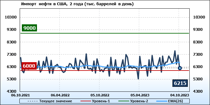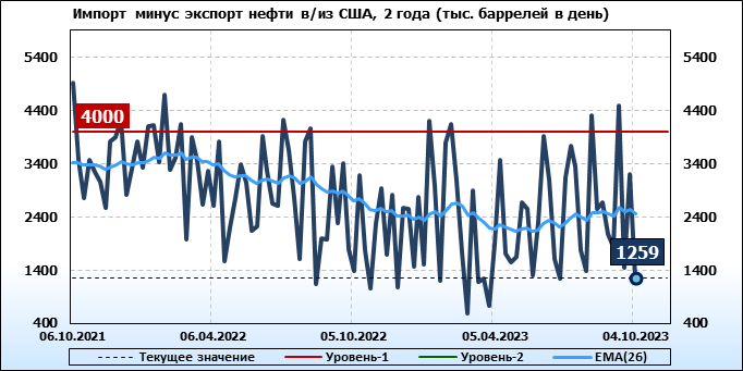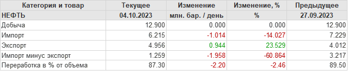 EIA. Добыча, импорт, экспорт нефти в США на 4 октября 2023