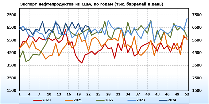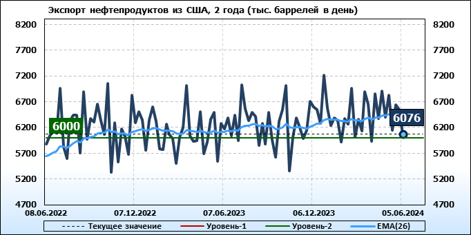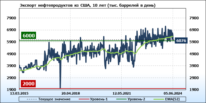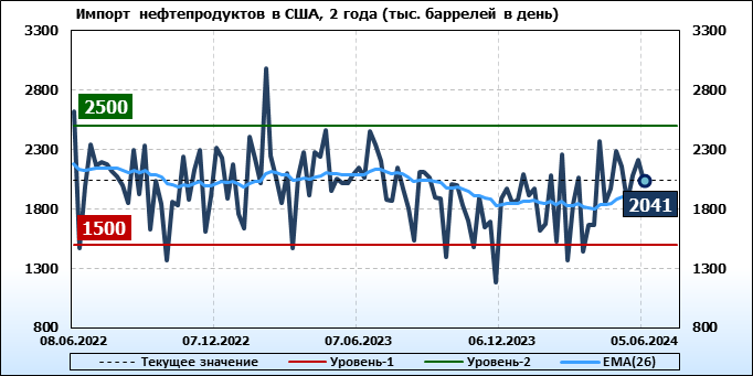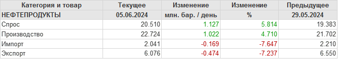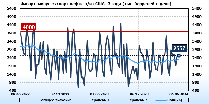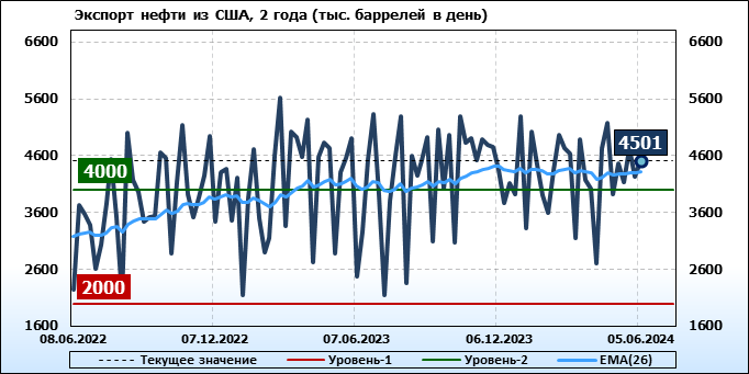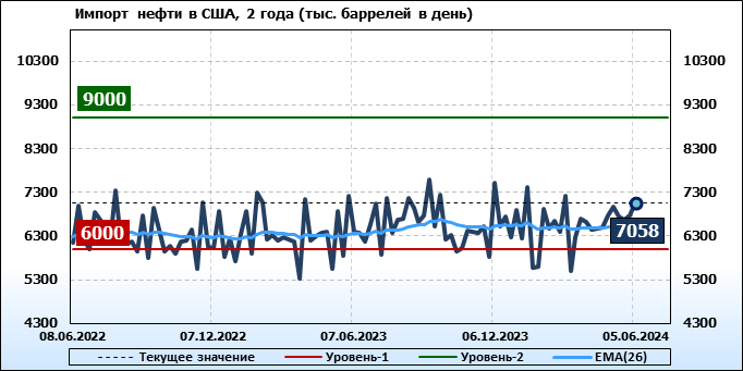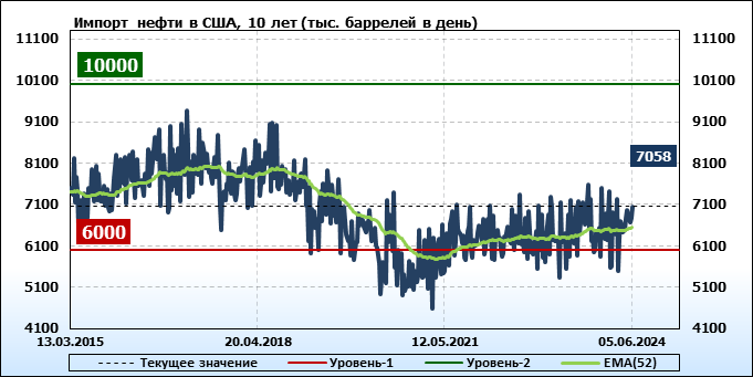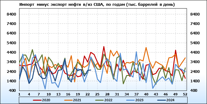 EIA. Добыча, импорт, экспорт нефти в США на 5 июня 2024
