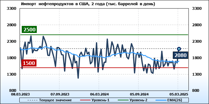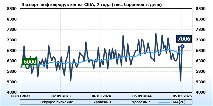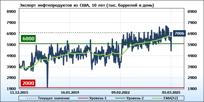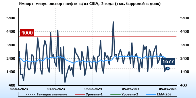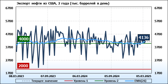 EIA. Добыча, импорт, экспорт нефти в США на 5 марта 2025