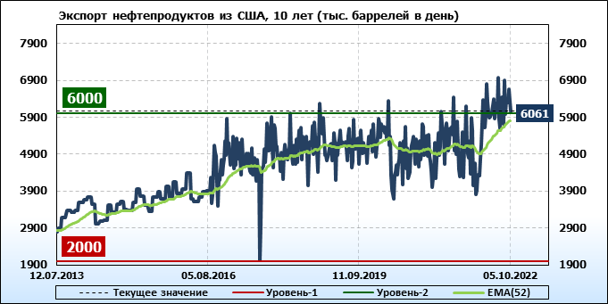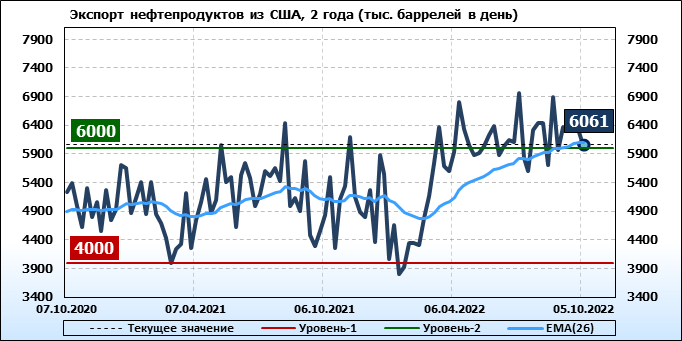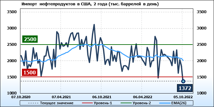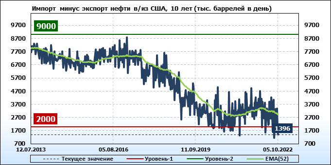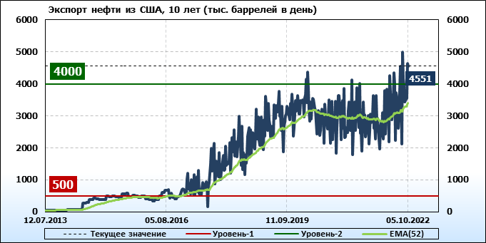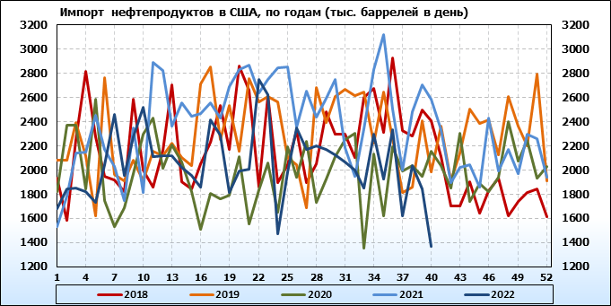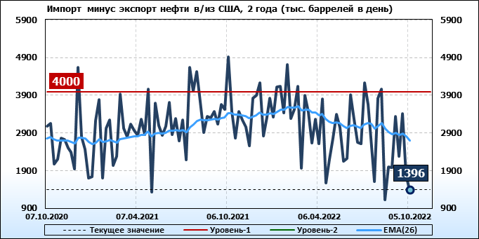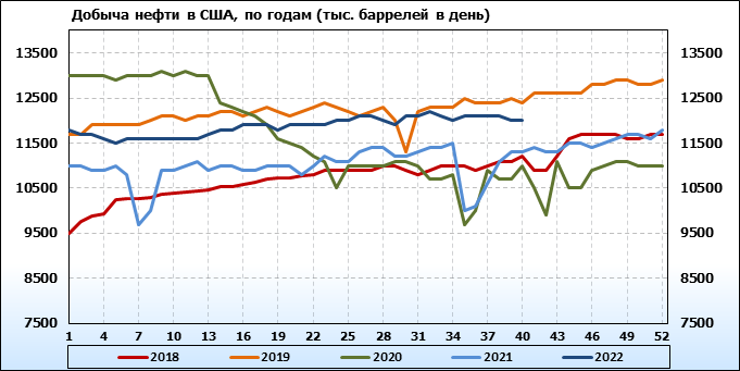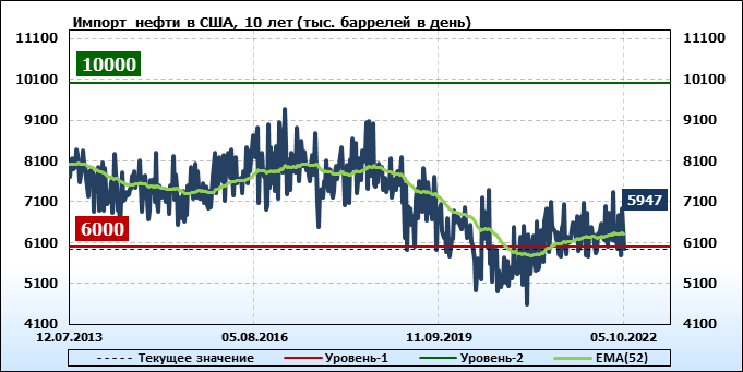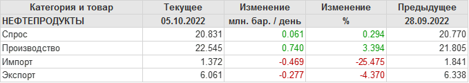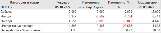EIA. Добыча, импорт, экспорт нефти в США на 5 октября 2022