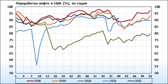 EIA. Коммерческие запасы нефти в США на 5 октября 2022