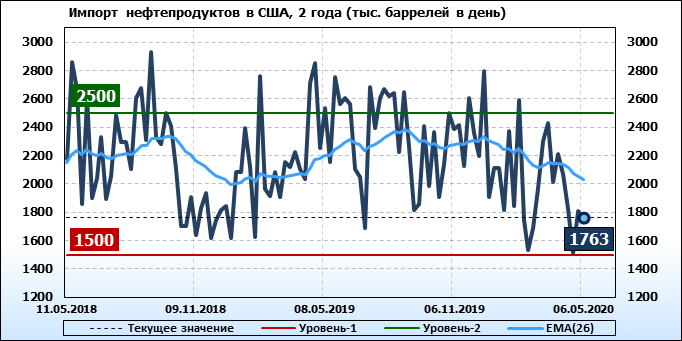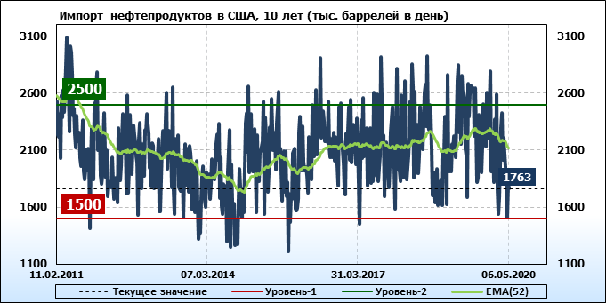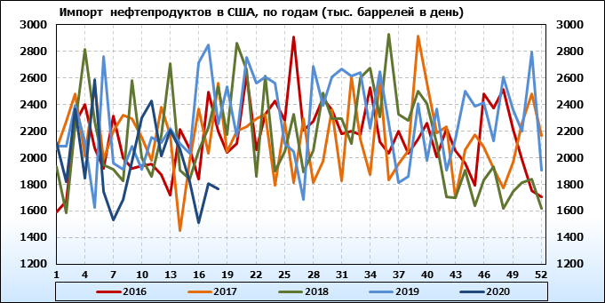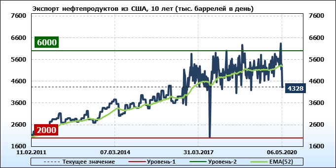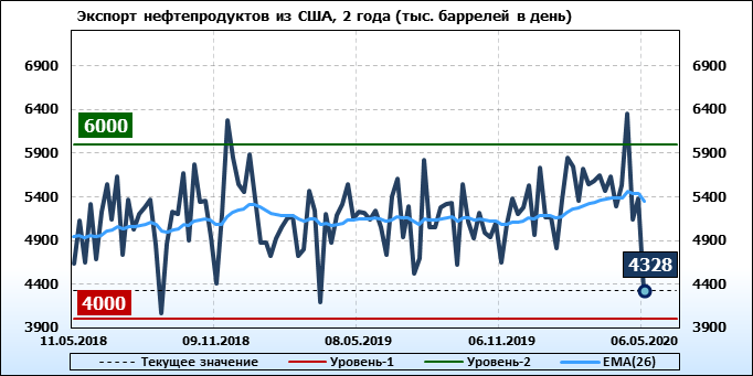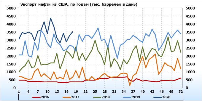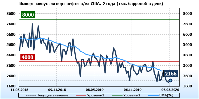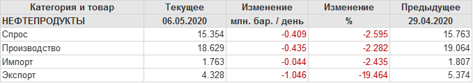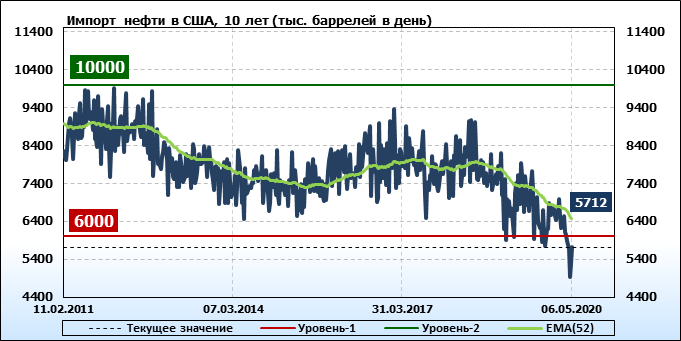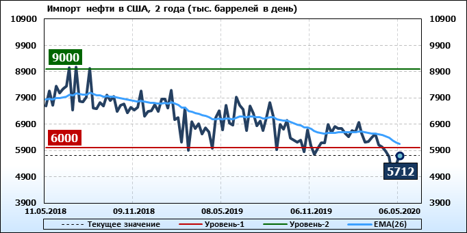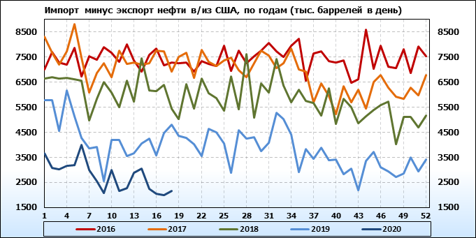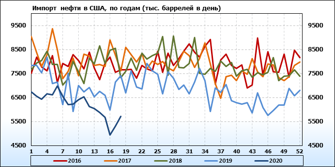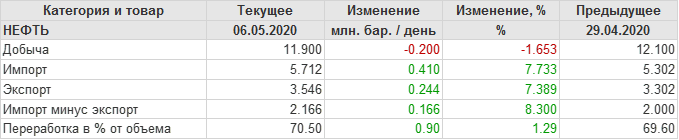 EIA. Добыча, импорт, экспорт нефти в США на 6 мая 2020