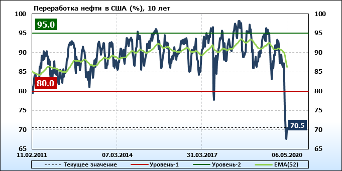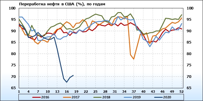 EIA. Коммерческие запасы нефти в США на 6 мая 2020