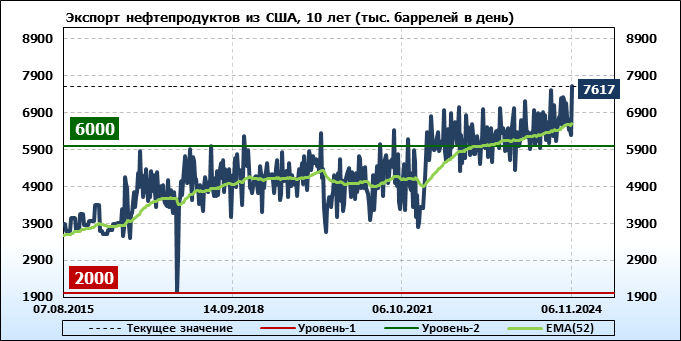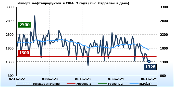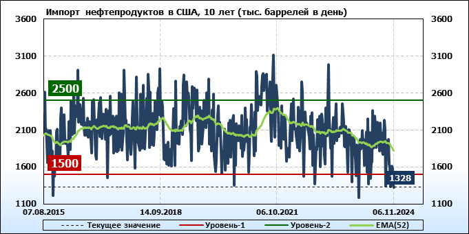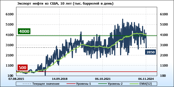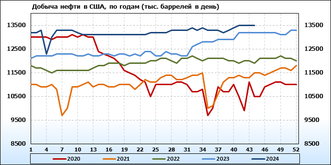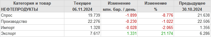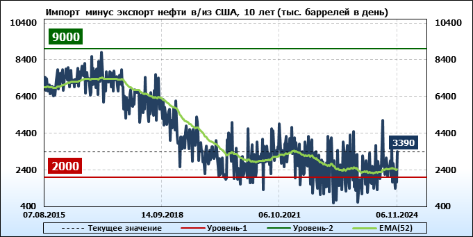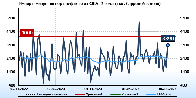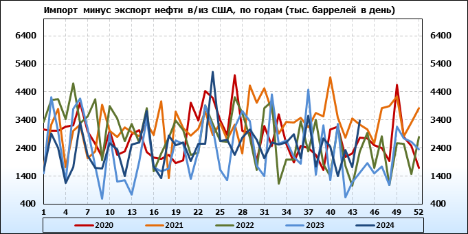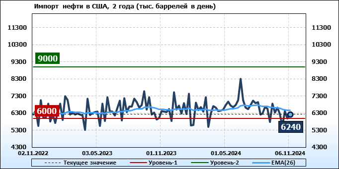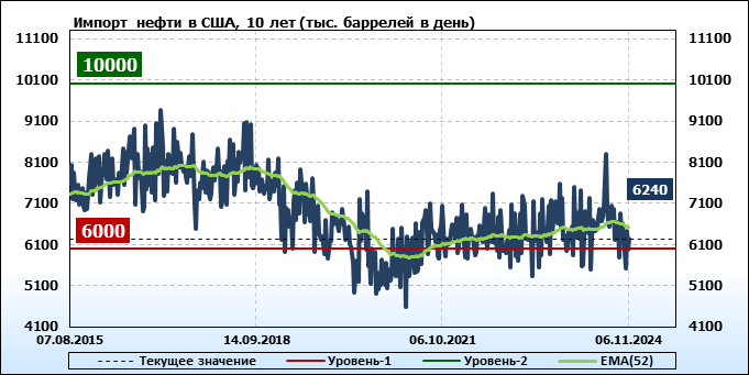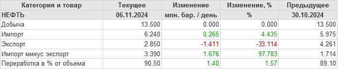 EIA. Добыча, импорт, экспорт нефти в США на 6 ноября 2024