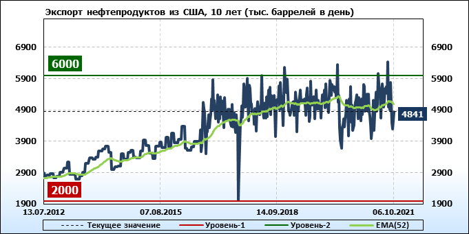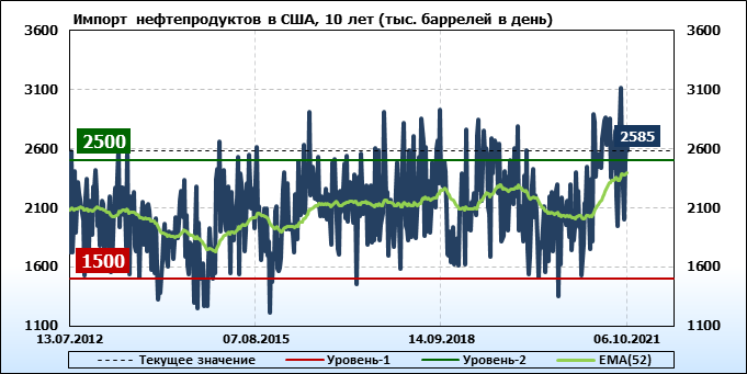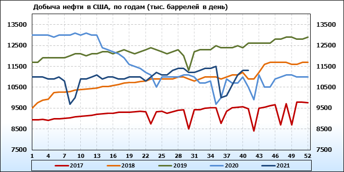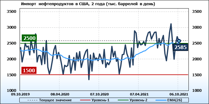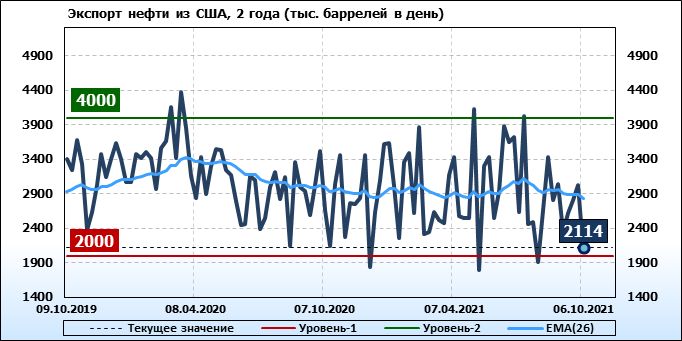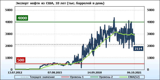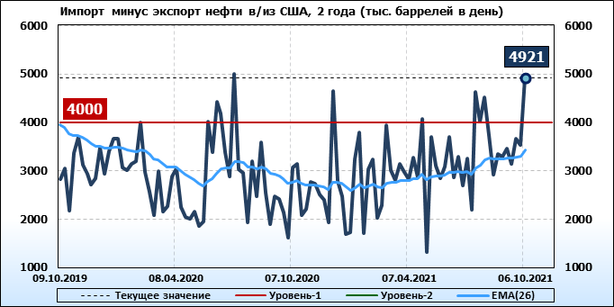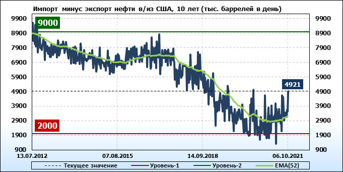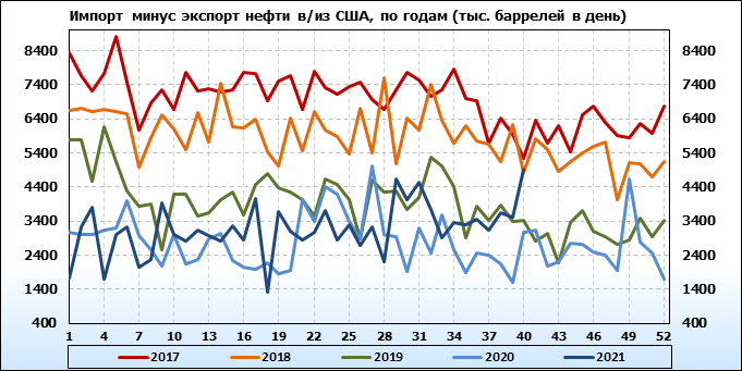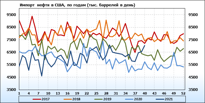 EIA. Добыча, импорт, экспорт нефти в США на 6 октября 2021