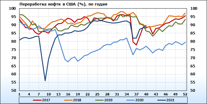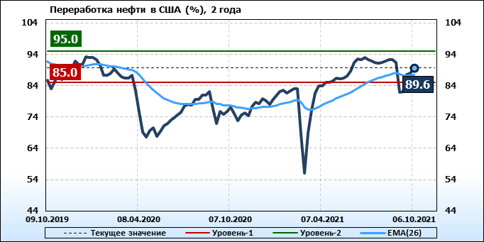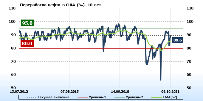 EIA. Коммерческие запасы нефти в США на 6 октября 2021