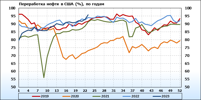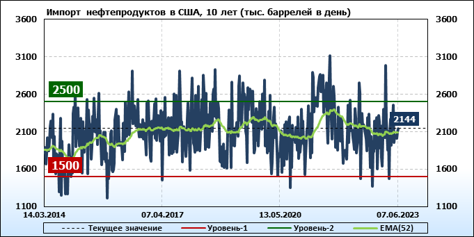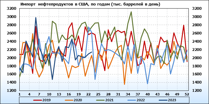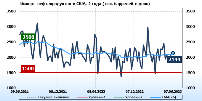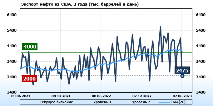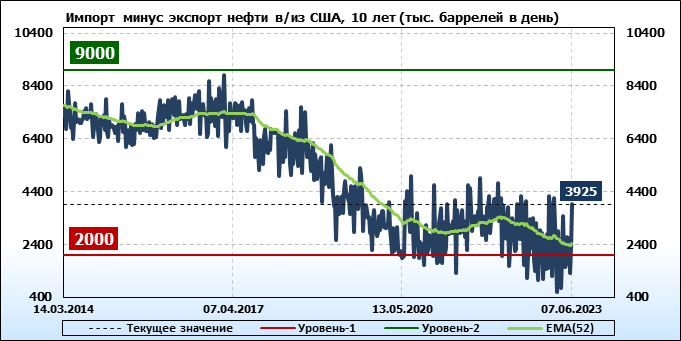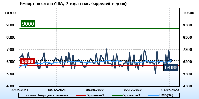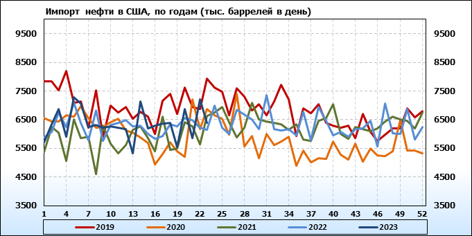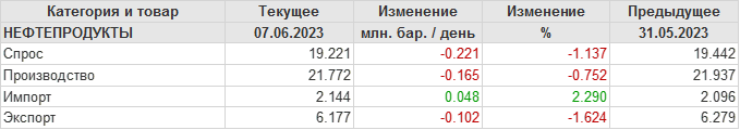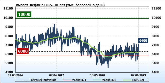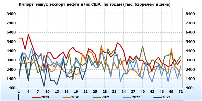 EIA. Добыча, импорт, экспорт нефти в США на 7 июня 2023