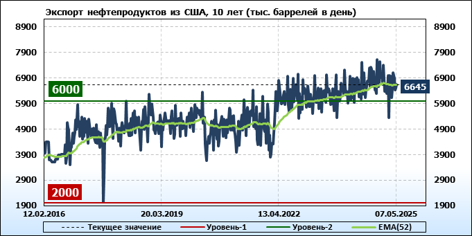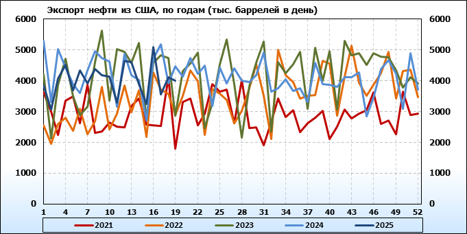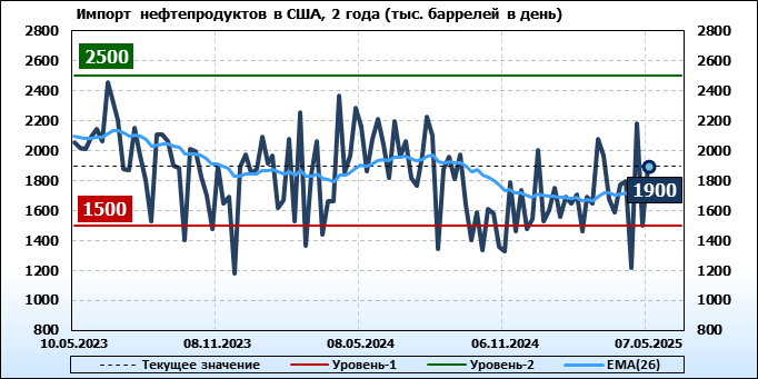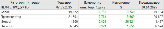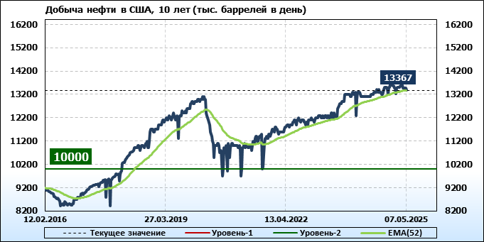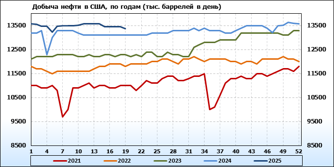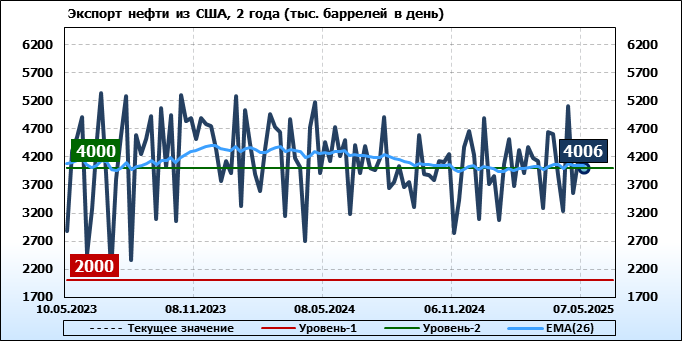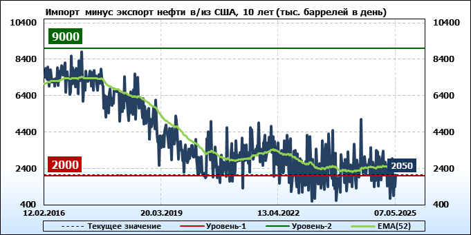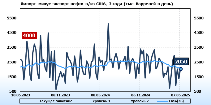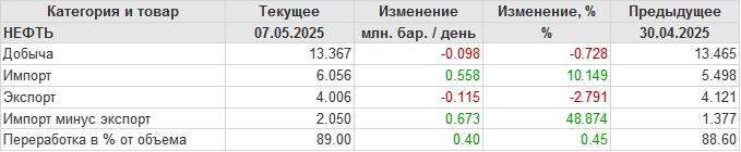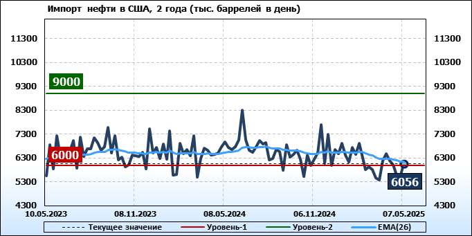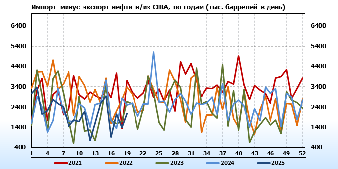 EIA. Добыча, импорт, экспорт нефти в США на 7 мая 2025