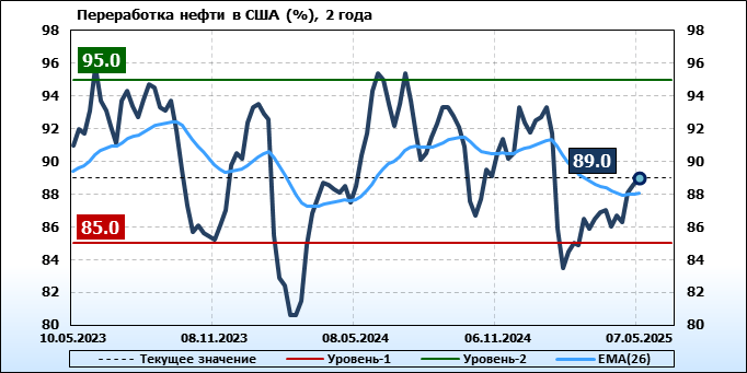 EIA. Коммерческие запасы нефти в США на 7 мая 2025