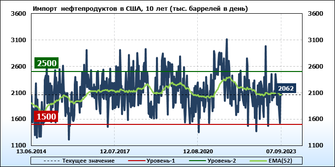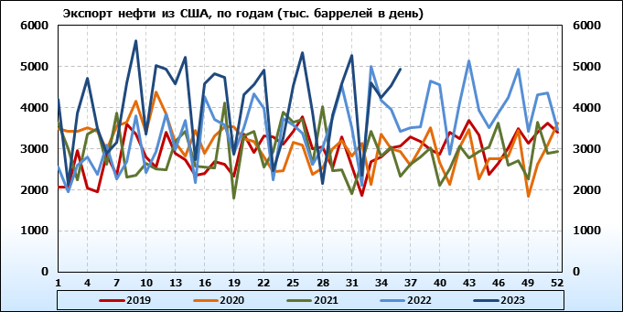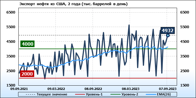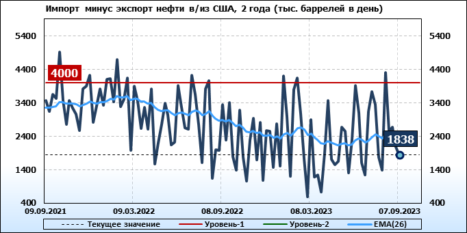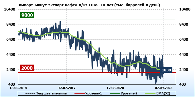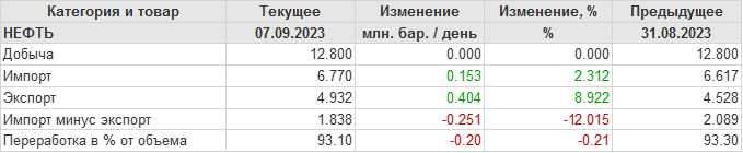 EIA. Добыча, импорт, экспорт нефти в США на 7 сентября 2023