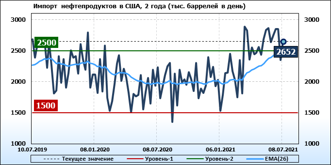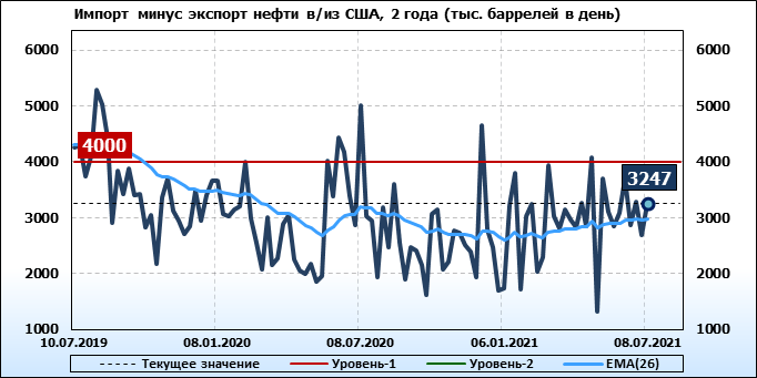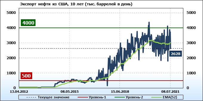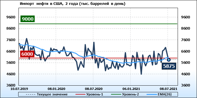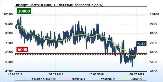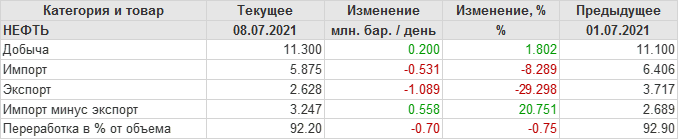 EIA. Добыча, импорт, экспорт нефти в США на 8 июля 2021