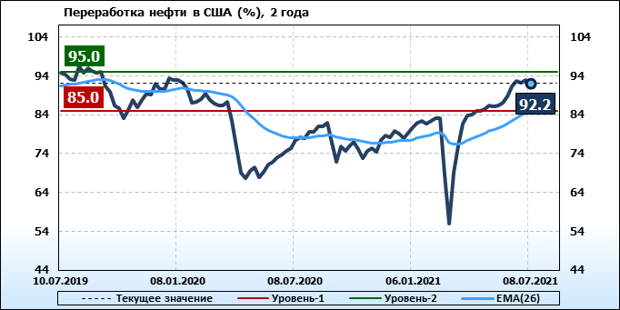 EIA. Коммерческие запасы нефти в США на 8 июля 2021