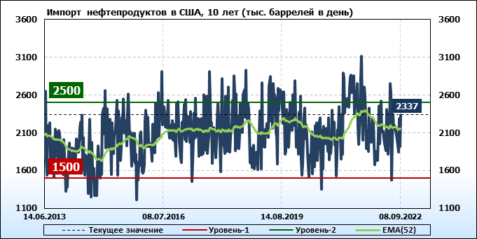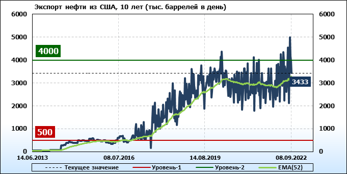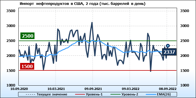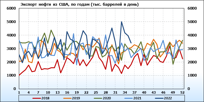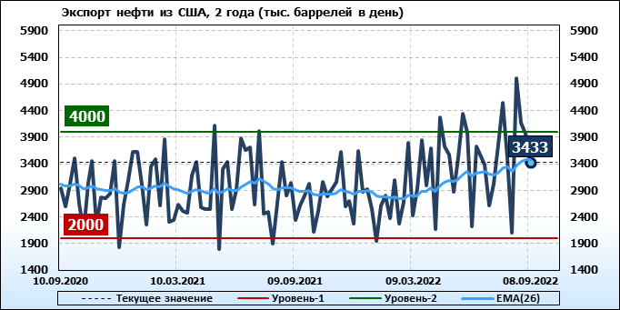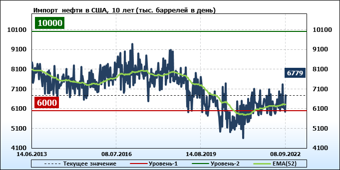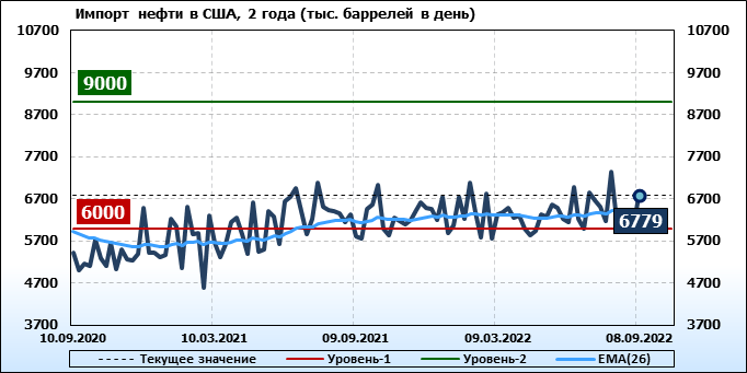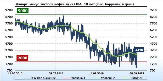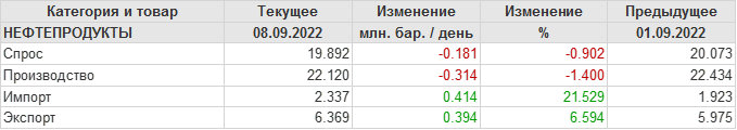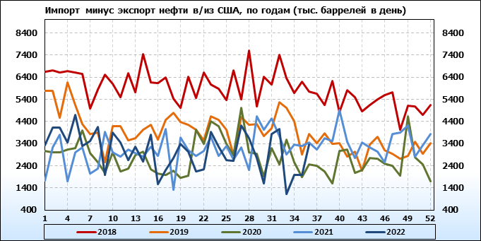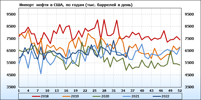 EIA. Добыча, импорт, экспорт нефти в США на 8 сентября 2022