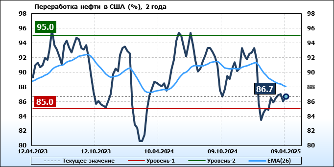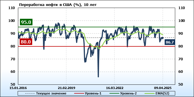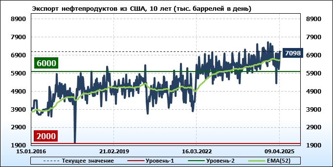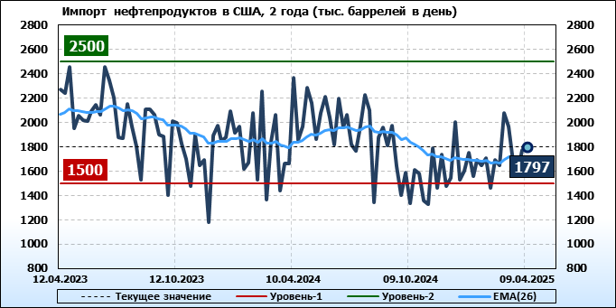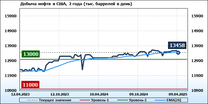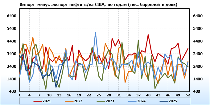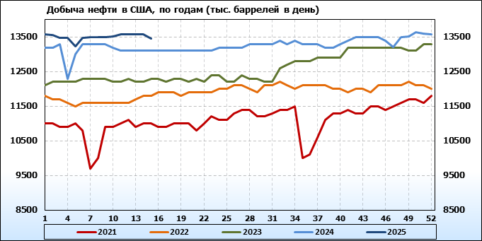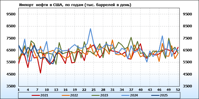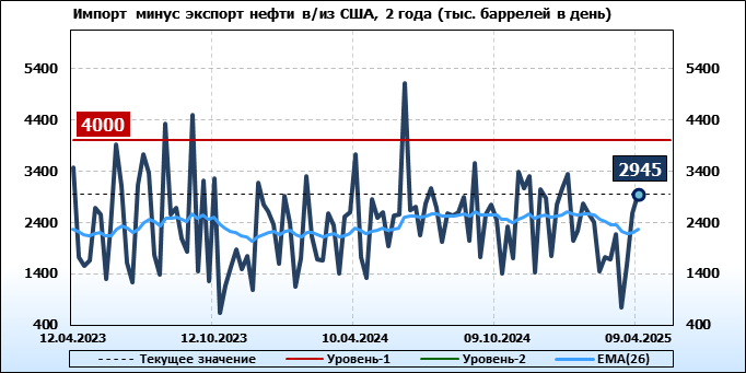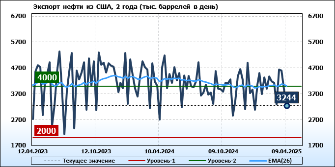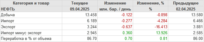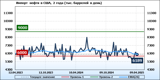 EIA. Добыча, импорт, экспорт нефти в США на 9 апреля 2025