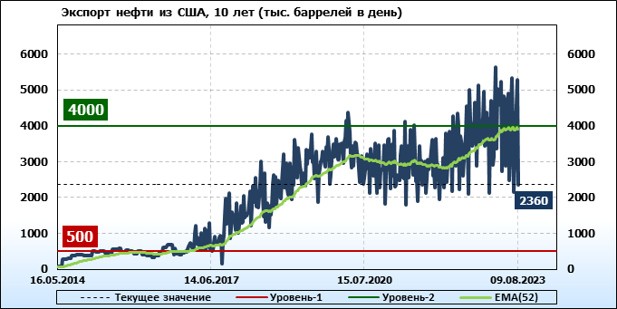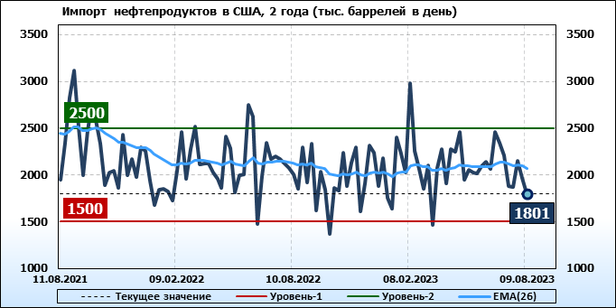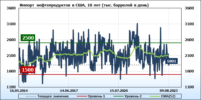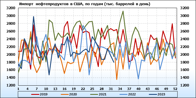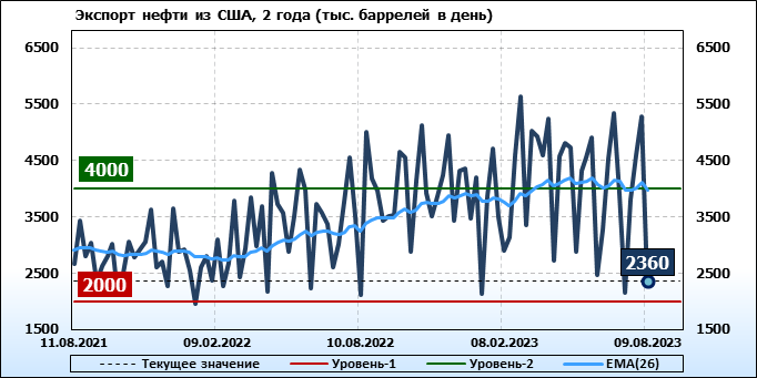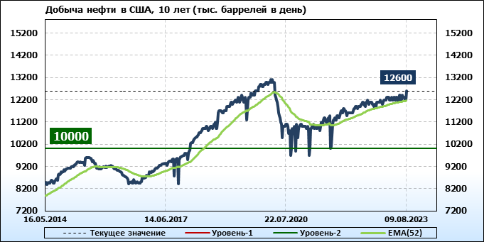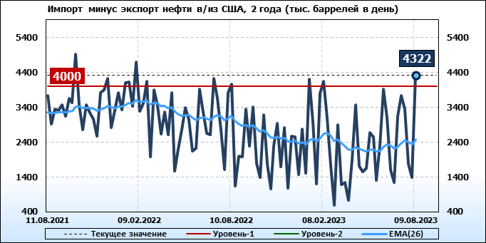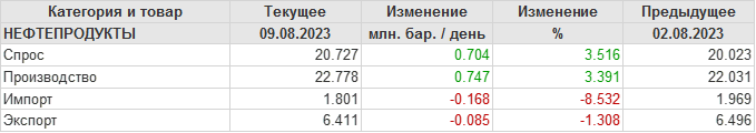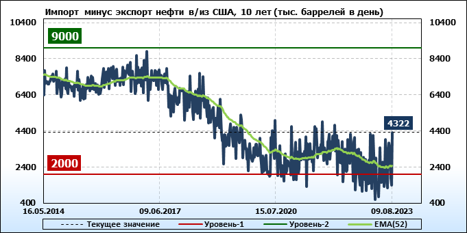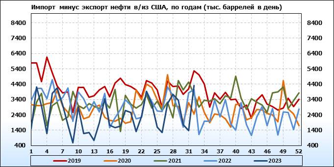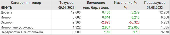 EIA. Добыча, импорт, экспорт нефти в США на 9 августа 2023