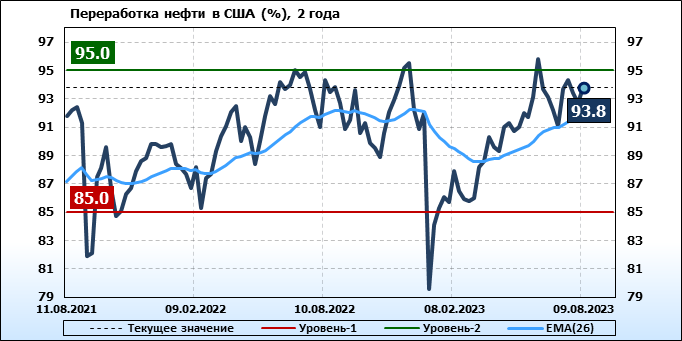Рынки обращают внимание на данные из США. Так, запасы дистиллятов и бензина в стране за неделю по 4 августа опустились, тогда как рынки не ожидали изменений по сравнению с предыдущей неделей.