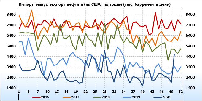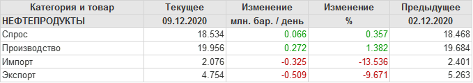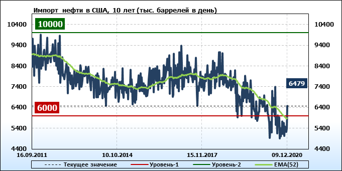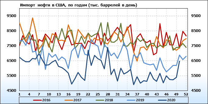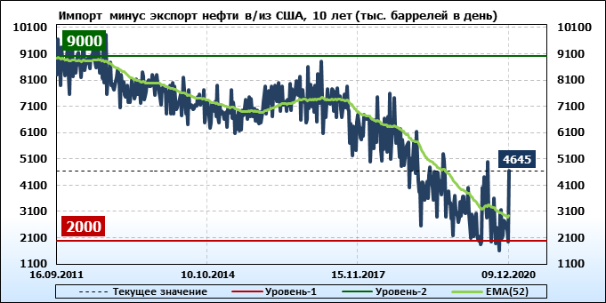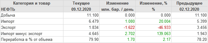 EIA. Добыча, импорт, экспорт нефти в США на 9 декабря 2020