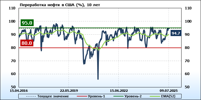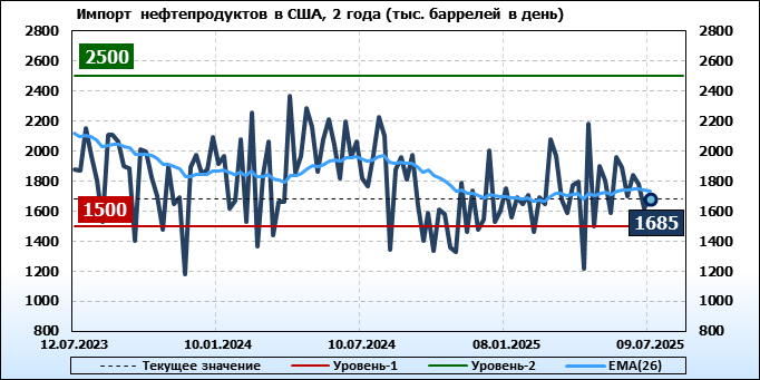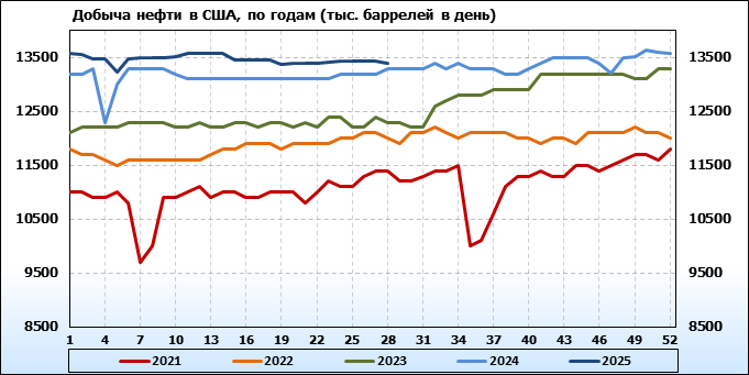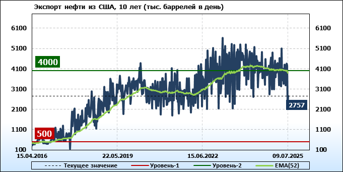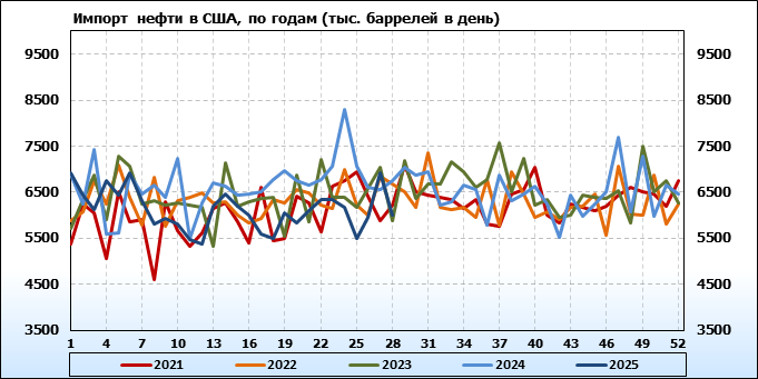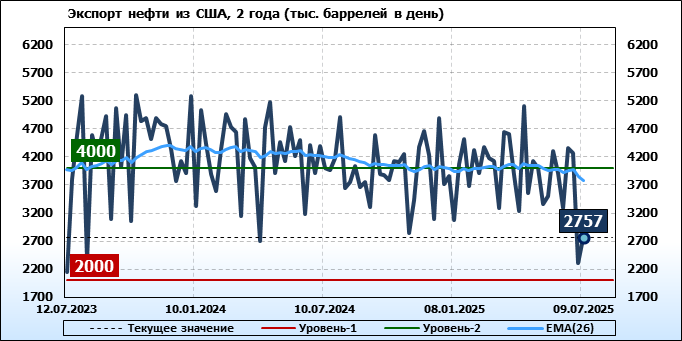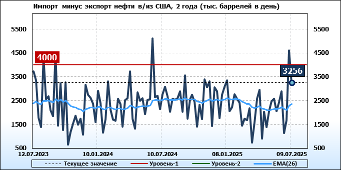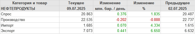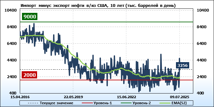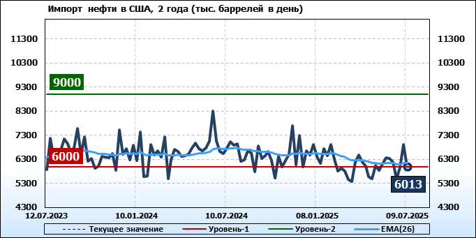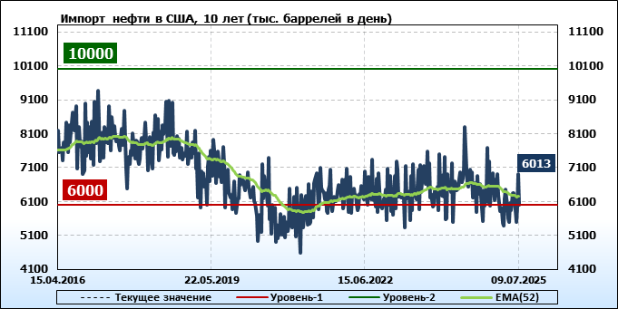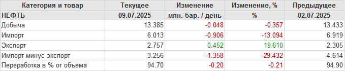 EIA. Добыча, импорт, экспорт нефти в США на 9 июля 2025