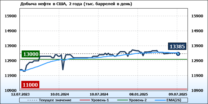 Добыча нефти в США за неделю, завершившуюся 4 июля, сократилась на 48 тысяч баррелей в день — до 13,385 миллиона баррелей в день, следует из еженедельного обзора управления энергетической информации минэнерго страны.