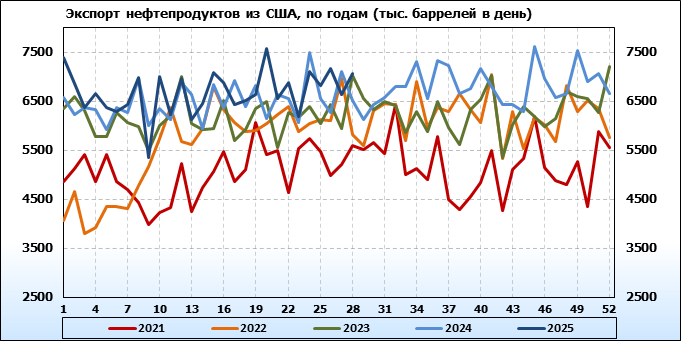 В среднем за последние четыре недели добыча нефти в США составила 13,421 миллиона баррелей в сутки, также говорится в обзоре.